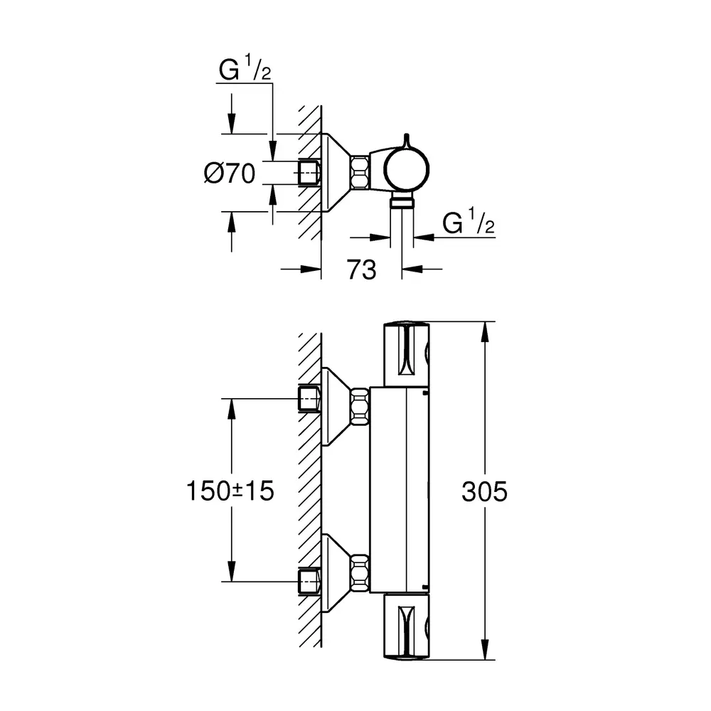 Вбудований термоелемент. Стопор безпеки за 38 °C. Технологія досконалого потоку при зменшенні витрати води. Вбудований стопор змішаної води.