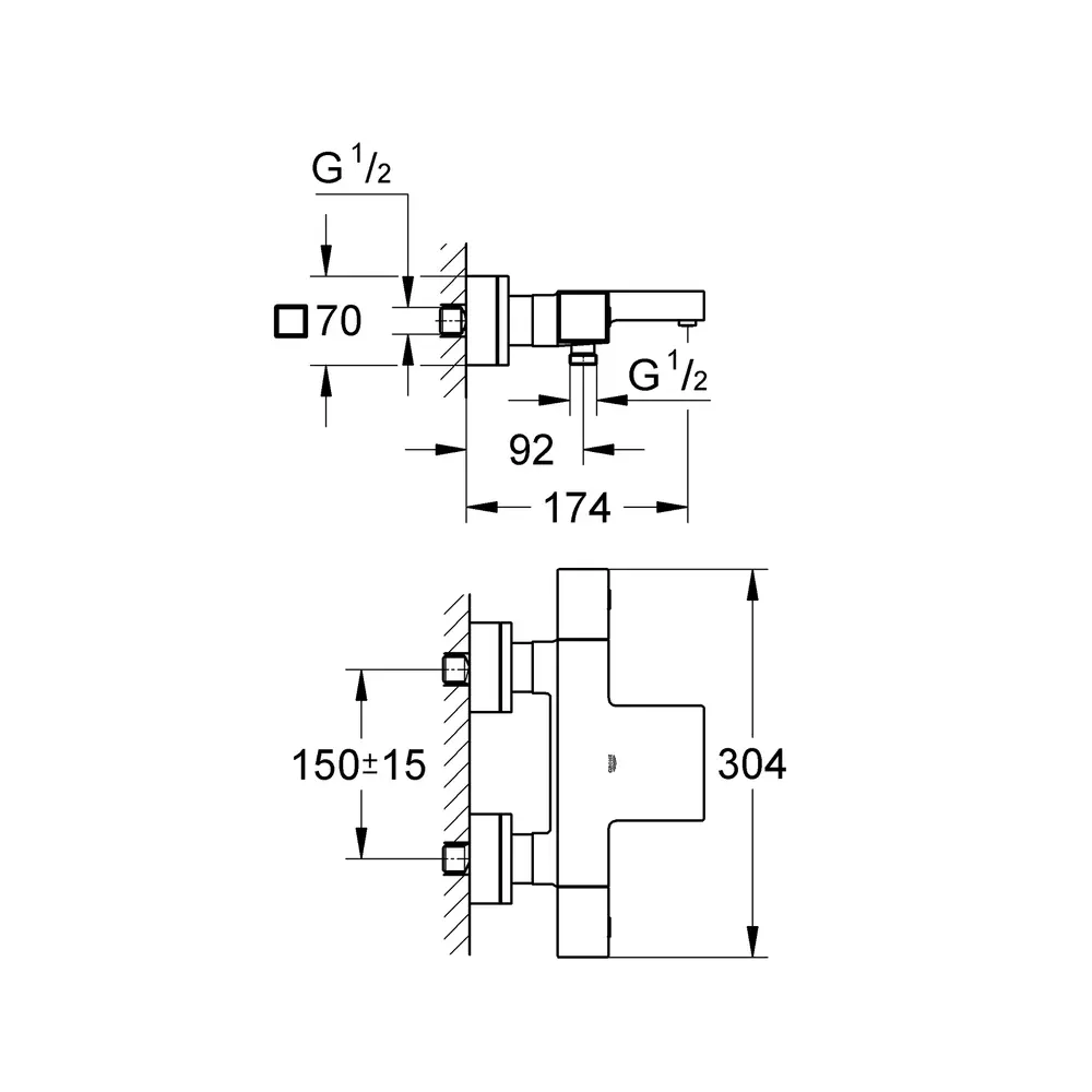 Вбудовані зворотні клапани. Фільтри для затримання бруду. Захист від зворотного потоку. Приховані S-подібні сполуки. Регулює обсяг водного потоку. Під час встановлення необхідно підключення гарячої води з лівого боку!