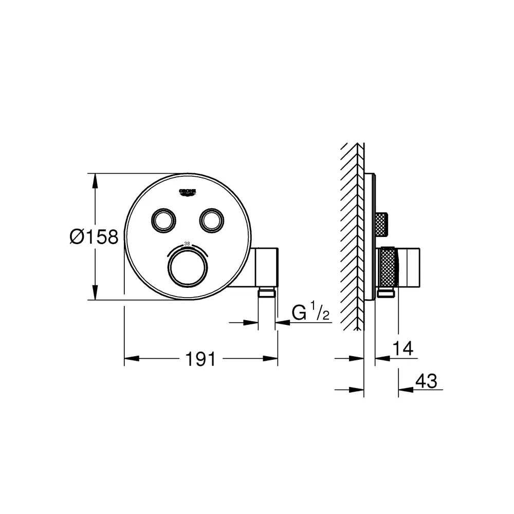 Комплект верхньої монтажної частини (для GROHE Rapido SmartBox 35600000) без вбудованого механізму, кріплення