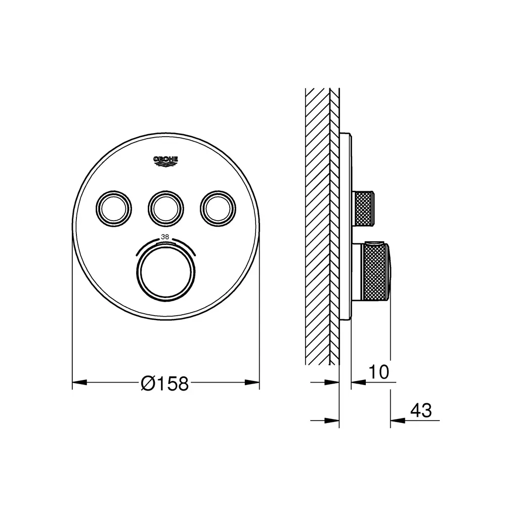 Комплект верхньої монтажної частини (для GROHE Rapido SmartBox 35600000) без вбудованого механізму, кріплення