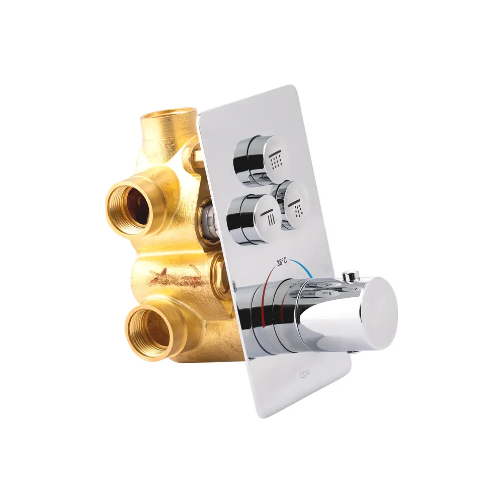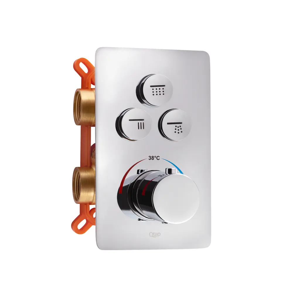Термостатическая душевая система скрытого монтажа Qtap Votice QT6443T105NKCSET обеспечит максимально комфортный прием душа. Она состоит из верхнего и ручного душа и смесителя с отдельным изливом. Длительный срок службы обеспечивают долговечна, износостойкая латунь и прочный пластик, из которых изготовлено изделие. Благодаря скрытому монтажу комплектующие системы могут размещаться на разных стенах. Термостатический смеситель позволяет автоматически регулировать температуру воды.