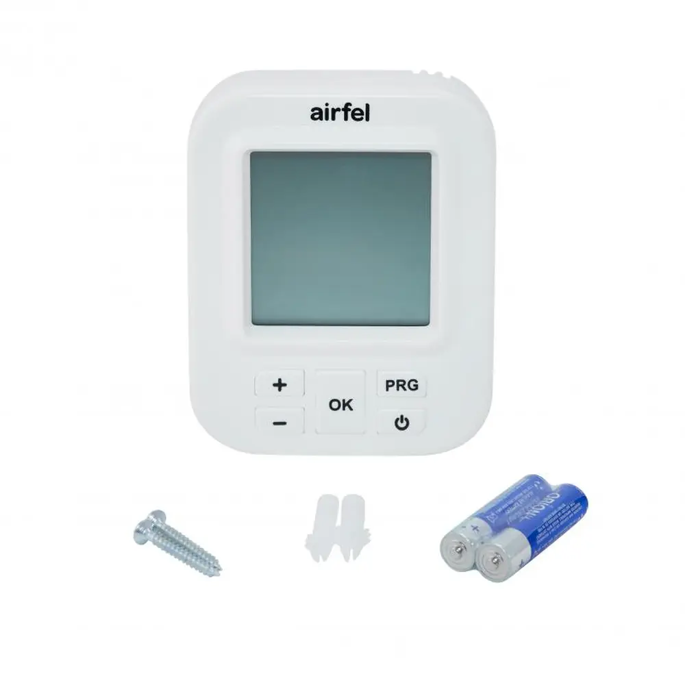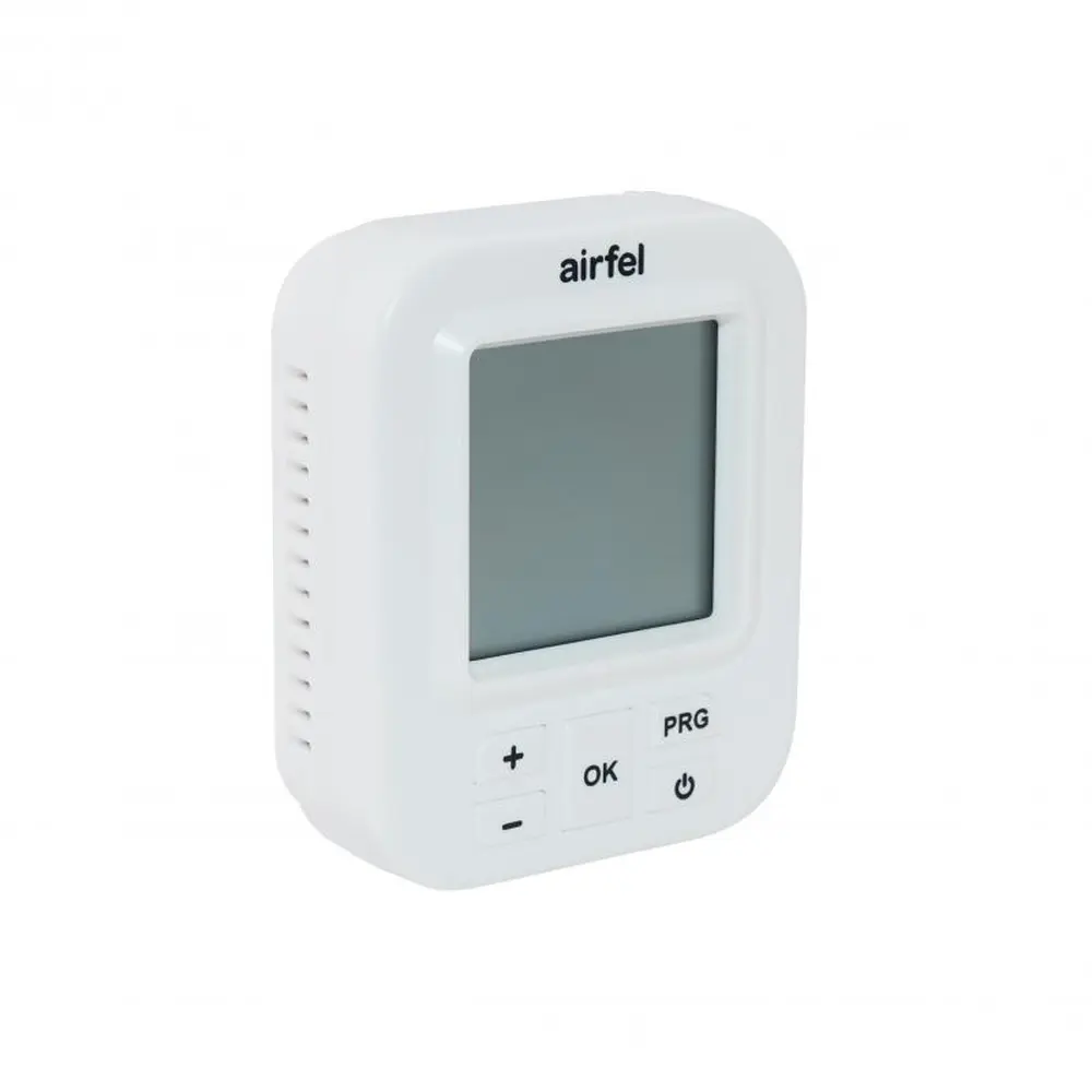 Тижневий програмований термостат Airfel CA підключається до котла за допомогою кабелів і управляє процесами включення/відключення опалення. Блок кімнатного термостата використовується в якості графічного інтерфейсу користувача для визначення і контролю температури в приміщенні. Оскільки відстань від кімнатного термостата до котла в різних приміщеннях буде відрізнятися, кабель включення/вимикання не входить в комплект поставки продукції.