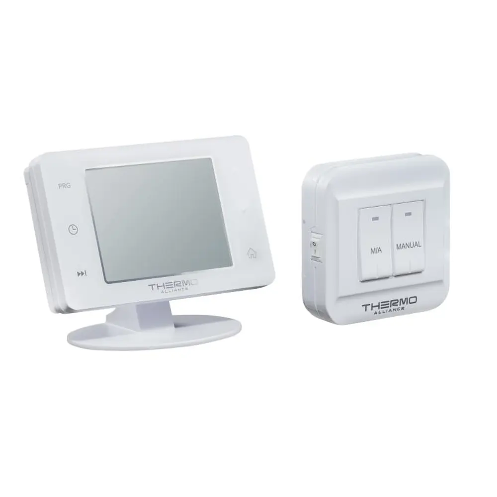 Тижневий програмований термостат Thermo Alliance ТА-2701RF має два блоки: блок управління опалювальним приладом (увімкнення/вимкнення) та блок кімнатного термостата, він використовується як графічний інтерфейс користувача для визначення та контролю температури в приміщенні. Обидва блоки підтримують зв‘язок радіочастотами (RF).