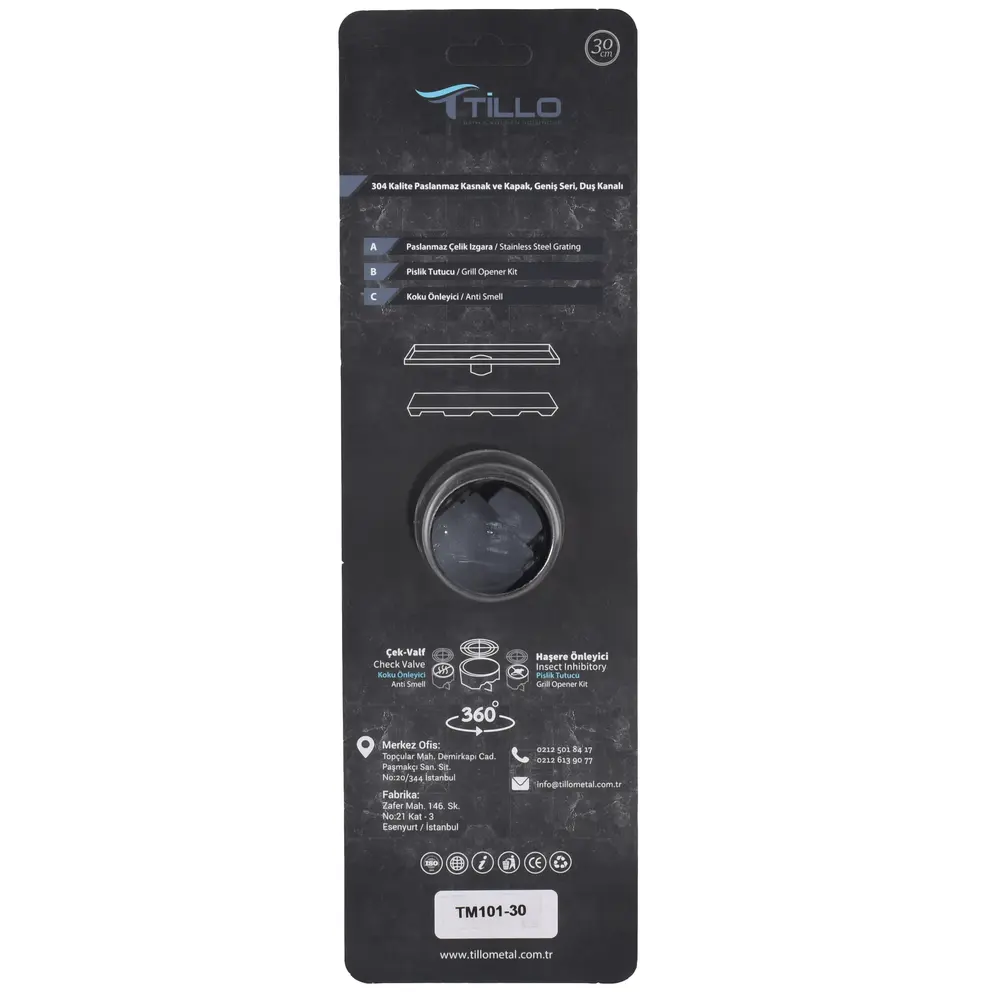 TM101-30-TILLO Трап Нерж.SUS304 з нерж. решіткою100х300, DN 50,сухий затвір без сифону, Туреччина
