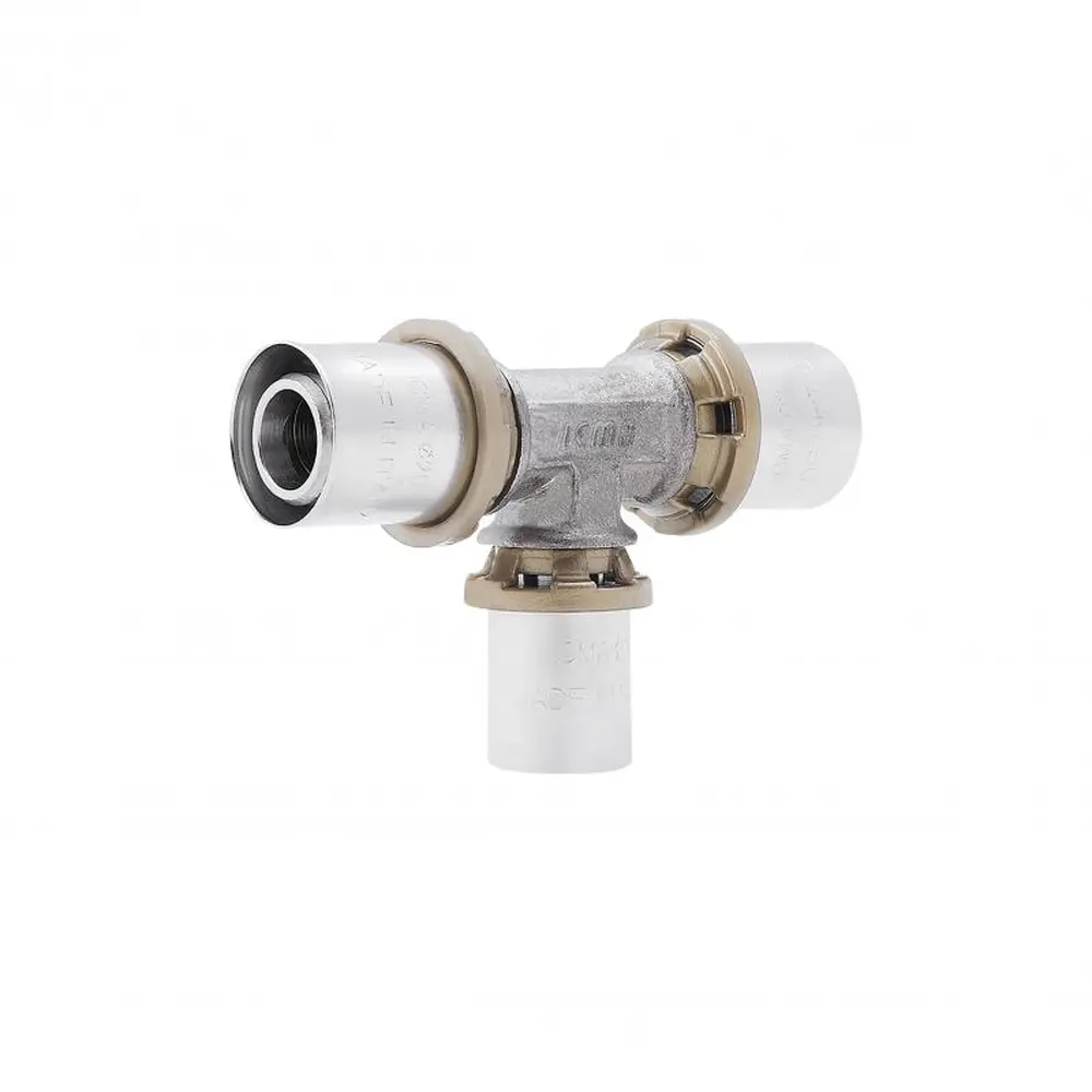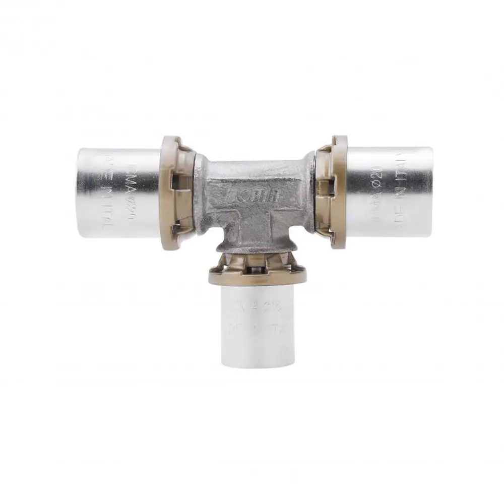 Прес-фітинг трійник Sempiter призначений для металопластикової труби для монтажу з радіальним пресуванням. Застосовується в системах водопостачання, опалення, і охолодження. Окремий прес на кожен діаметр труби стискає гільзу з нержавіючої сталі, яка надійно фіксує трубу на фітингу. Механічне з‘єднання забезпечує спеціальний профіль фітинга і гільзи з нержавіючої сталі, які були розроблені спеціально для того, щоб пресування відбувалося трьома різними профілями.