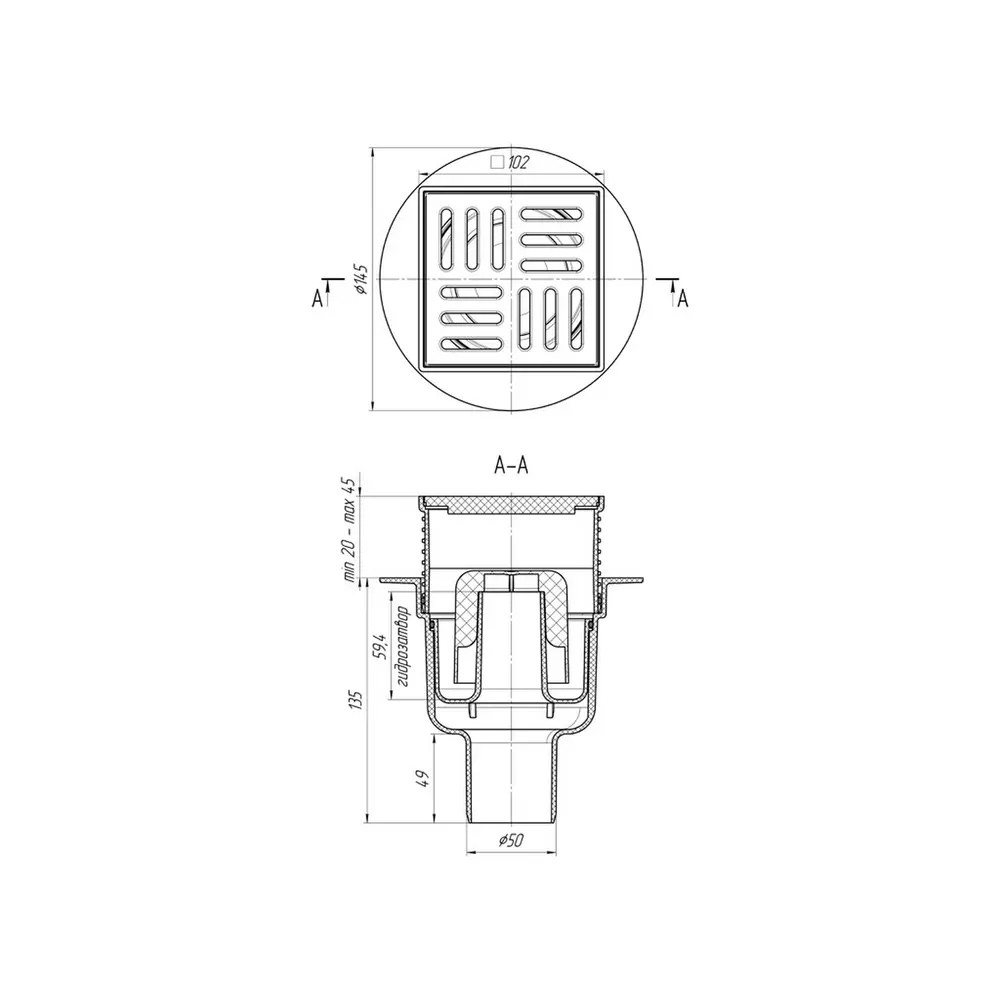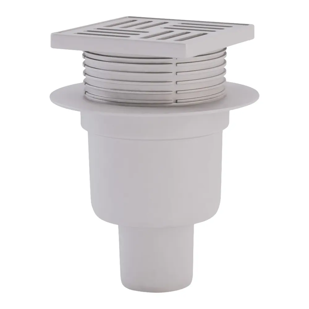 Трап ANI Plast TA5704 позволит создать свой душ мечты без бортиков вровень с полом. Такой душ выглядит стильно, подойдет ванной комнате в любом стиле. Трап выполнен из пластика в белом цвете, имеет цилиндрическую форму, состоит из корпуса с вертикальным отводом воды и квадратной перфорированной накладки, которая задерживает мусор. Изделие можно монтировать или в углу, или в другом месте на полу. Мокрый закрыл не дает неприятный запах проникнуть в помещение из канализации по трубам.