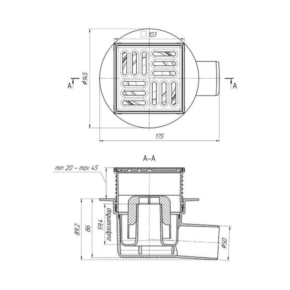 Трап ANIplast з горизонтальним випуском 50 мм, з нержавіючою решіткою 10х10 см ТА5602EU