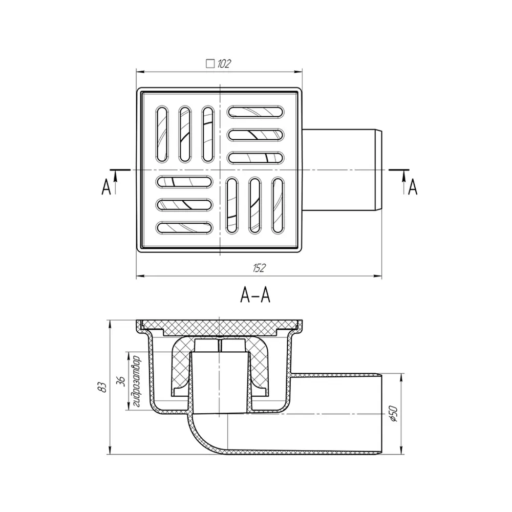 Трап ANIplast з горизонтальним випуском 50 мм, з решіткою 10х10 см TA5104EU