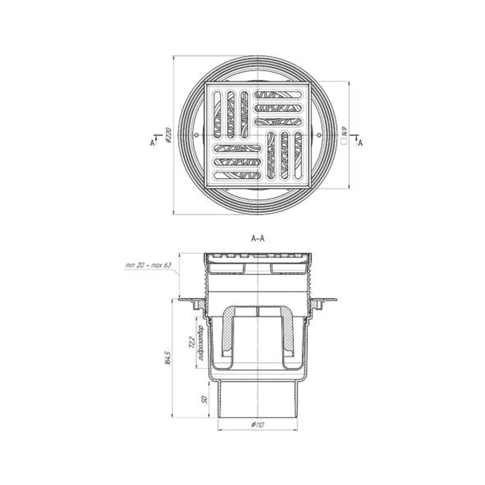 Трап ANIplast з вертикальним випуском 110 мм, з нержавіючою решіткою 15х15 см TA1712EU