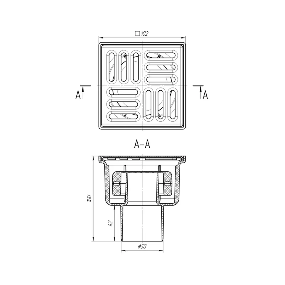 Трап ANIplast з вертикальним випуском 50 мм, з нержавіючою решіткою 10х10 см TQ5202EU