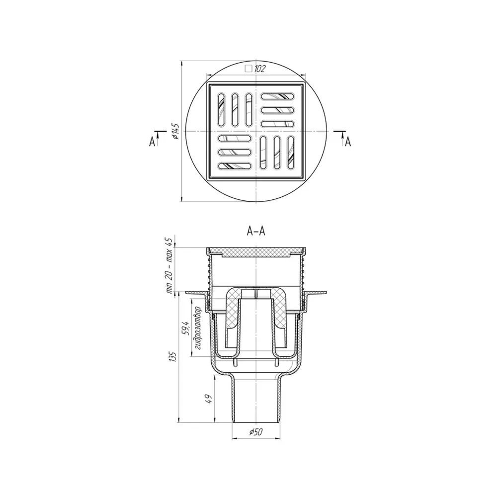 Трап ANIplast з вертикальним випуском 50 мм, з решіткою 10х10 см TA5704