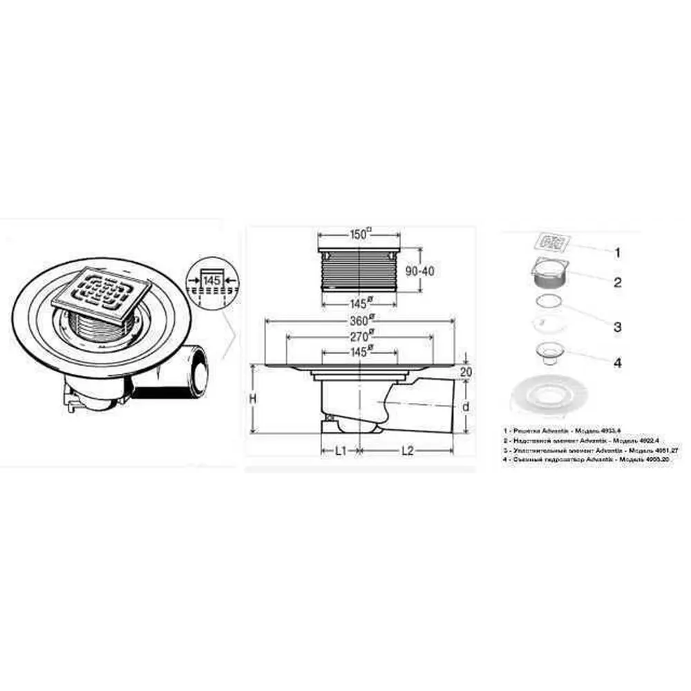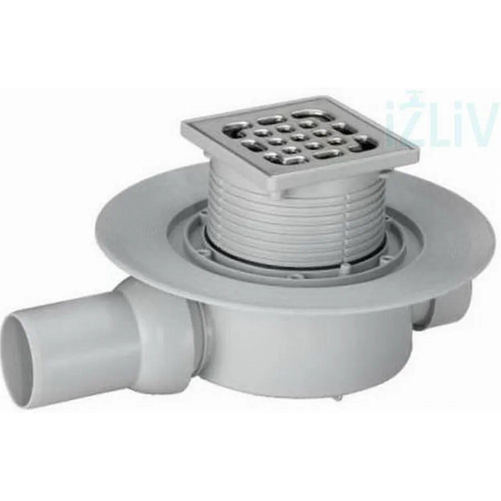 Решітка вироби VIEGA 557171 - полірована нержавіюча сталь розміром 150х150 мм., А корпус виготовлений з міцного, вискококачественного пластика який стійкий до впливу високих температур і побутової хімії. Гідрозатвор в конструкції формується водяним стовпом і запобігає проникненню запахів з каналізації. Горловина трапа регулюється по висоті і щільно прилягає до корпусу вироби на якому розташований фланець для закріплення і нанесення гідроізоляції. Конструкція даного вироби прохідна, що дає можливість підключення інших приладів і забезпечує легкий монтаж. Відведення в каналізаційну трубу стандартного діаметра - 100 мм.
