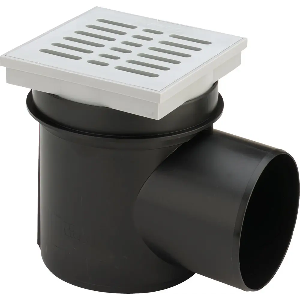 Решітка вироби VIEGA 106003 - полірована нержавіюча сталь розміром 150х150 мм., А корпус виготовлений з міцного, вискококачественного пластика який стійкий до впливу високих температур і побутової хімії. Гідрозатвор в конструкції формується водяним стовпом і запобігає проникненню запахів з каналізації. Горловина трапа регулюється по висоті і щільно прилягає до корпусу вироби на якому розташований фланець для закріплення і нанесення гідроізоляції. Конструкція даного вироби прохідна, що дає можливість підключення інших приладів і забезпечує легкий монтаж. Відведення в каналізаційну трубу стандартного діаметра - 100 мм.