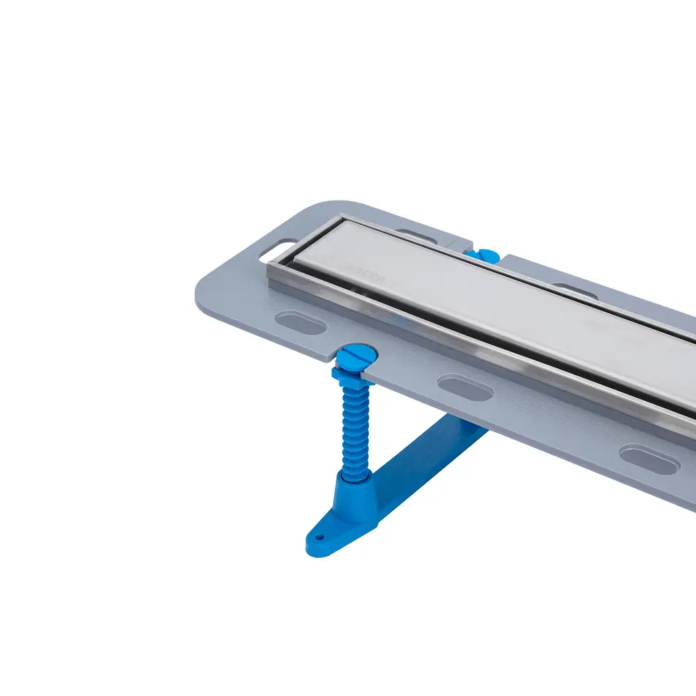 Трап лінійний Geberr GB-05/80 двосторонній з можливістю встановлення під плитку. У комплектації є опори, що дозволяють регулювати висоту. Трап виконаний із якісної потовщеної нержавіючої сталі INOX316. Трап оснащений грязеуловлювачем, що дає можливість легко почистити від засмічення та мокрим затвором (гідрозатвором), який запобігає поширенню запахів з каналізаційної системи за рахунок постійної наявності води в сифоні.