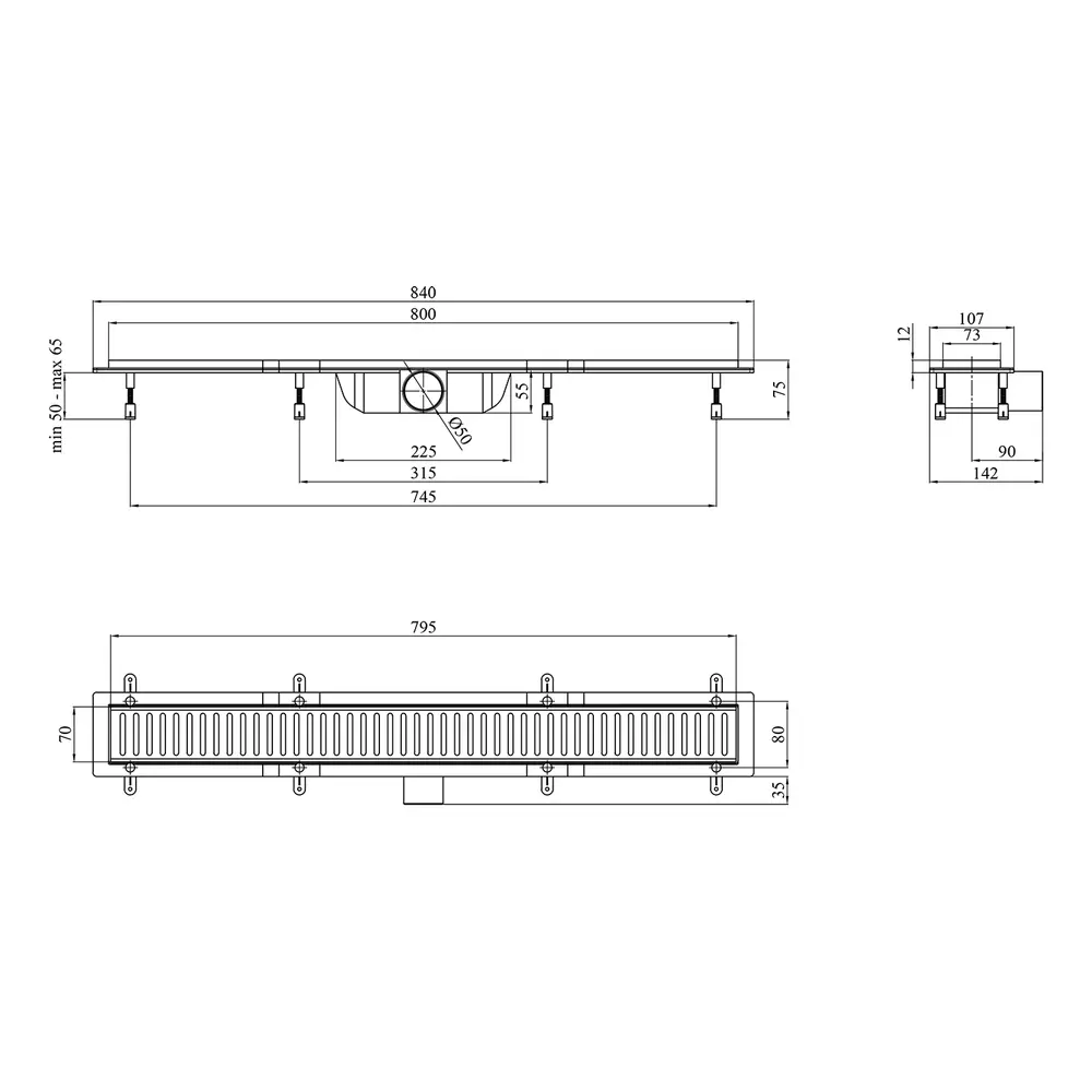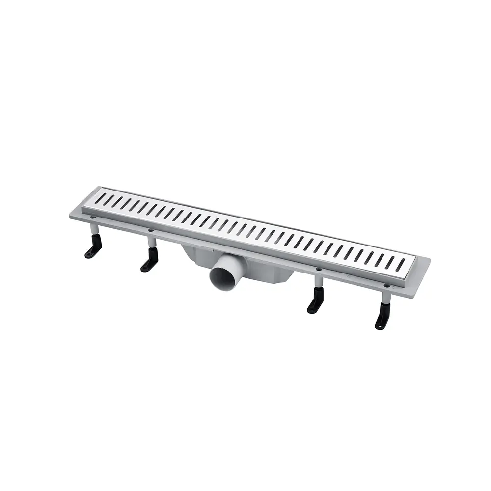 Лінійний трап Kroner KRP Harz S80 Sektion з декоративною решіткою розміром 800х73 мм з нержавіючої сталі, виконує функцію водовідведення з душових кабін без застосування душового піддона, на рівні з підлогою. Корпус трапа виготовлений зі стійкого до агресивних середовищ міцного пластику. Також душовий трап має сухий гідрозатвор діаметром 50 мм, який надійно захистить від проникнення неприємних запахів з каналізаційних труб. Конструкція лотка дає можливість без зайвих труднощів почистити виріб.