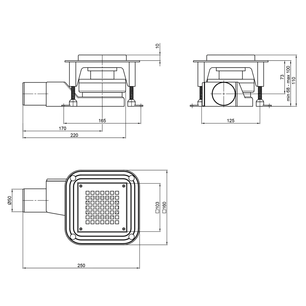Точечный трап Qtap Aquarius BLA6011304 поможет обустроить современную душевую зону без применения душевого поддона, на уровне с полом. Корпус трапа выполнен из качественного ABS пластика черного цвета. Данная модель выполнена из квадратной решеткой из нержавеющей стали размером 103х103 мм и имеет выпускное отверстие диаметром 50 мм. Отличительной преимуществом является комбинированный закрыл, не дает неприятный запах распространяться в помещение из канализации по трубам.