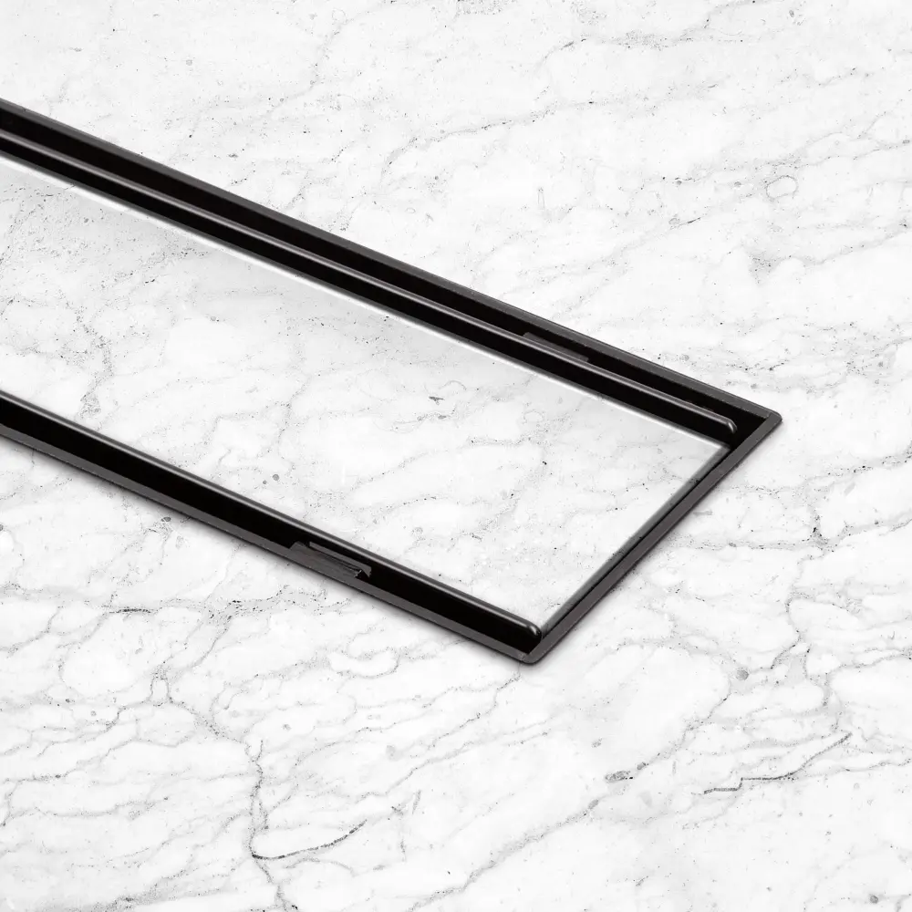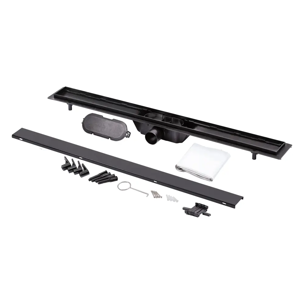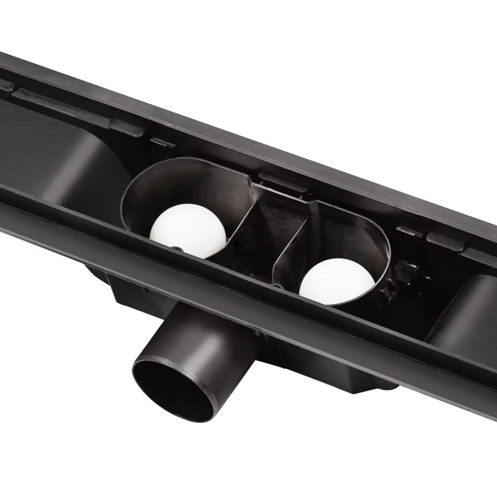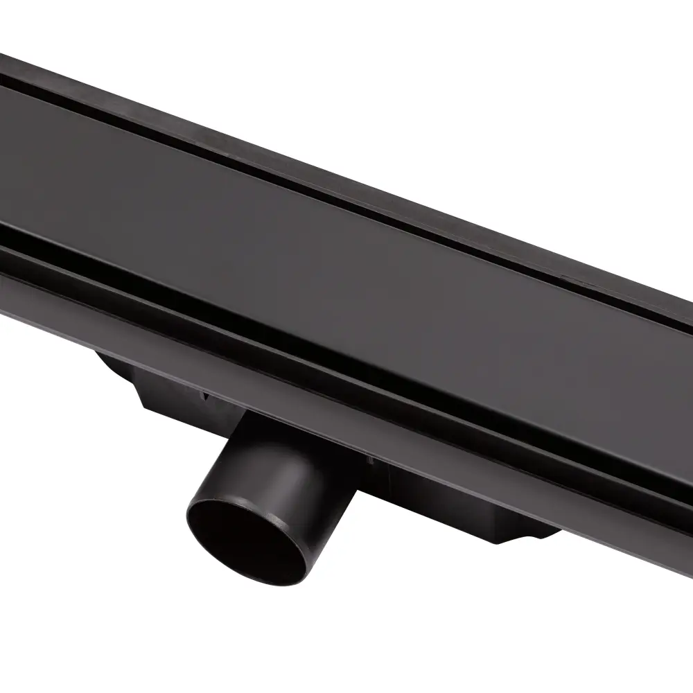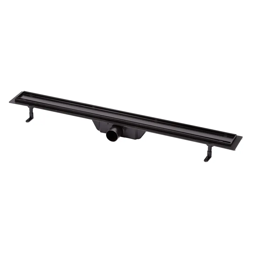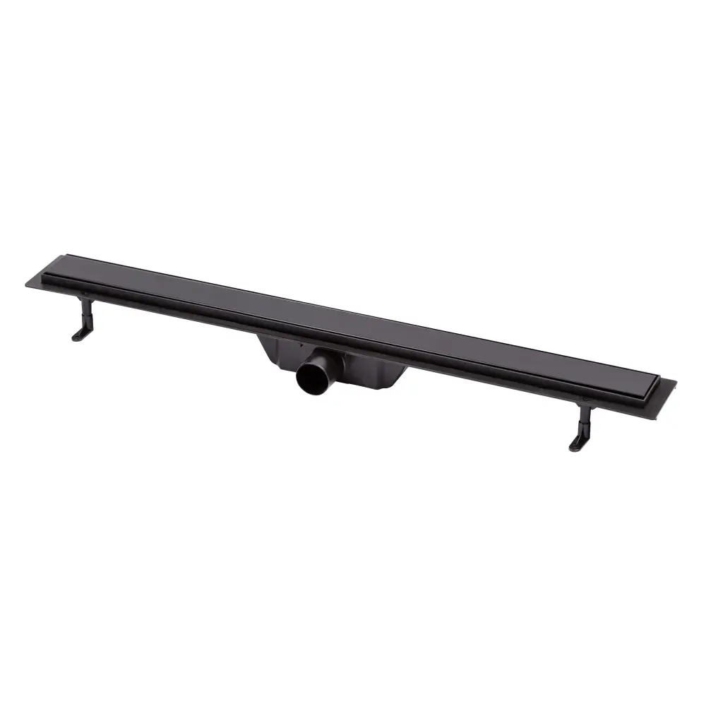 Универсальный линейный трап Qtap Dry Tile304-900MBLA с двусторонней накладкой из нержавеющей стали 900х70. Универсальность заключается в том, что в желоб можно положить свою керамическую плитку, что придаст особенности Вашей ванной комнате. Или перевернуть накладку и использовать ее другой стороной, черной матовой поверхностью, отлично впишется в современный дизайн.
