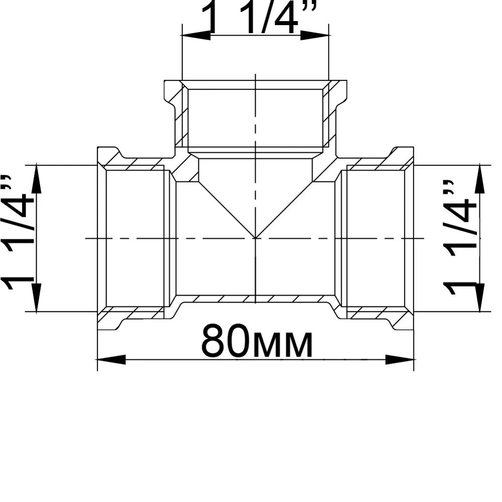 -З'єднання: 1 1/4″ Внутрішня різьба х 1 1/4″ Внутрішня різьба х 1 1/4″ Внутрішня різьба