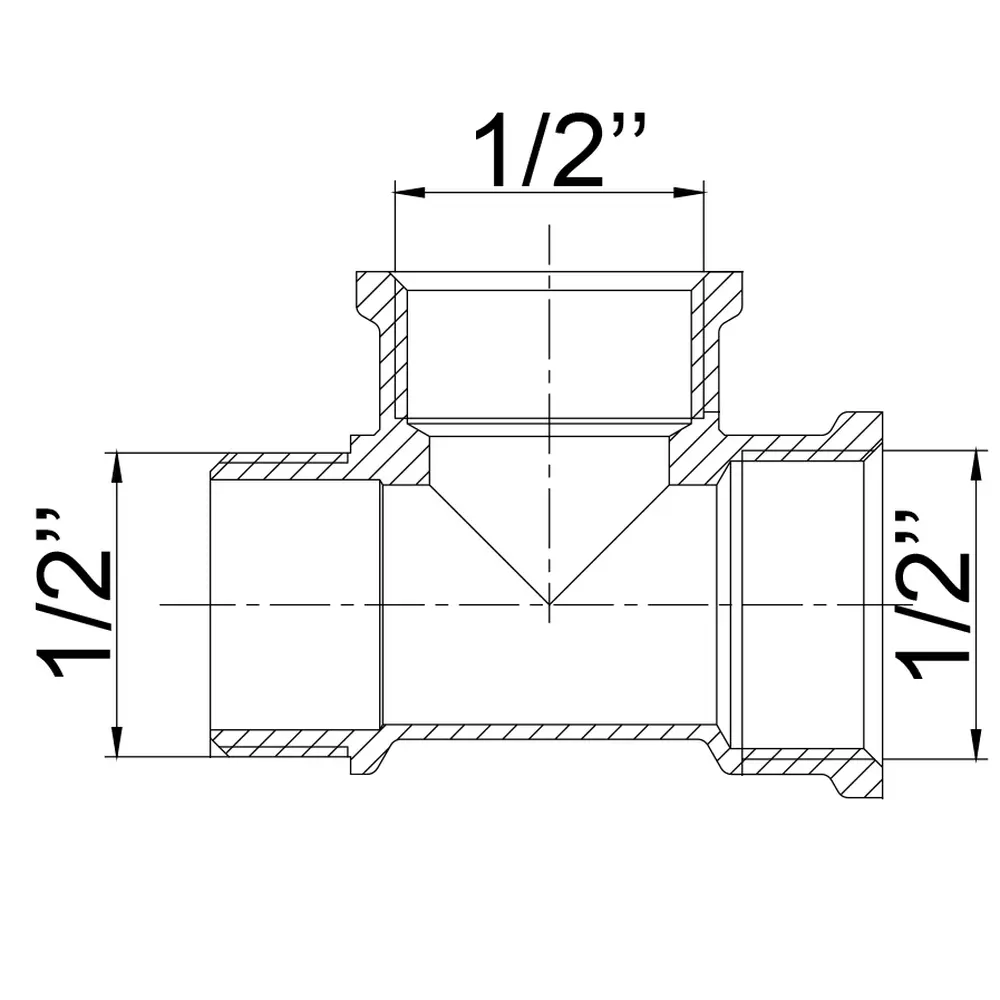 -З'єднання: 1/2″ Внутрішня різьба х 1/2″ Внутрішня різьба х 1/2″ Зовнішня різьба