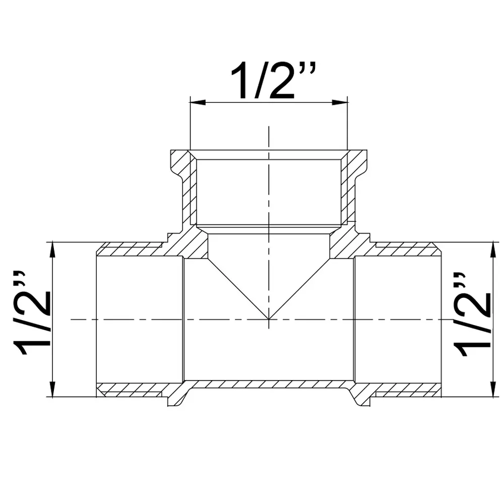 -З'єднання: 1/2″ Зовнішня різьба х 1/2″ Внутрішня різьба х 1/2″ Зовнішня різьба