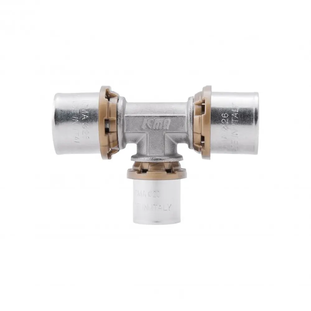 Прес-фітинг трійник Sempiter призначений для металопластикової труби для монтажу з радіальним пресуванням. Застосовується в системах водопостачання, опалення, і охолодження. Окремий прес на кожен діаметр труби стискає гільзу з нержавіючої сталі, яка надійно фіксує трубу на фітингу. Механічне з‘єднання забезпечує спеціальний профіль фітинга і гільзи з нержавіючої сталі, які були розроблені спеціально для того, щоб пресування відбувалося трьома різними профілями.