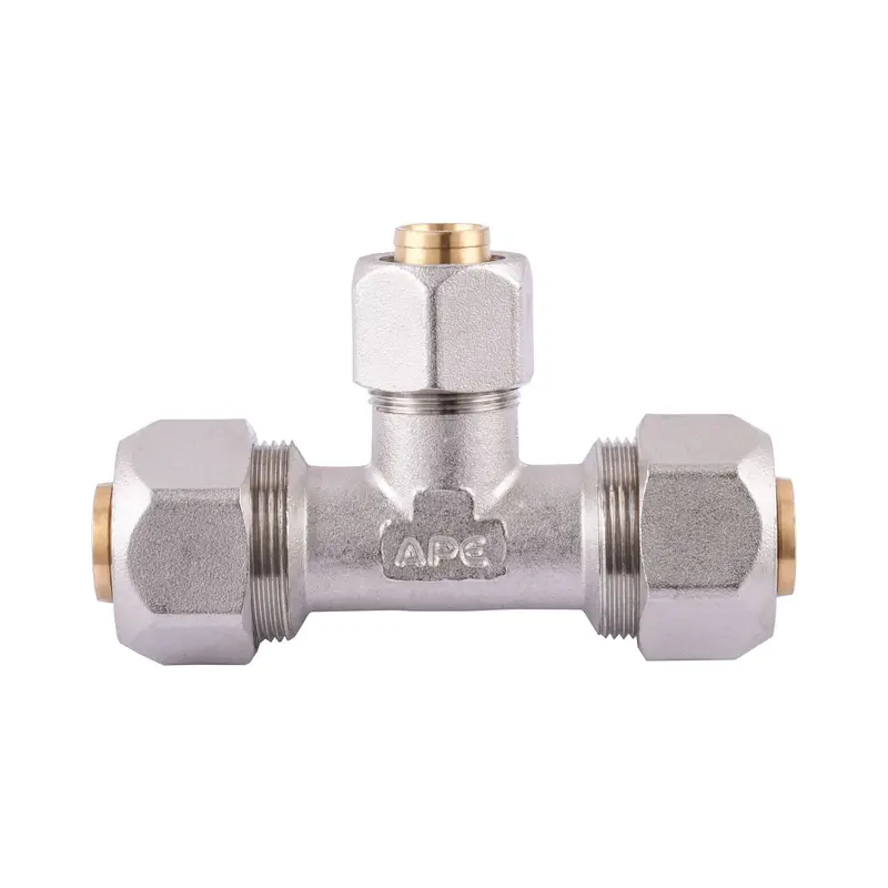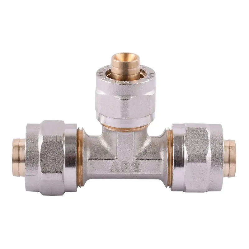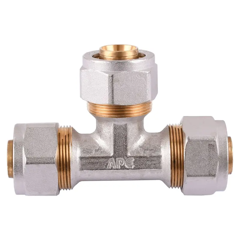 Для розгалуження трубопроводу з металопластикових труб на три напрямки рекомендуємо використовувати трійники металопластик разом із іншими видами металопластикових фітингів. Такий комплект забезпечує герметичне з’єднання, зберігає пропускну здатність системи та гарантує тривалий термін служби.
