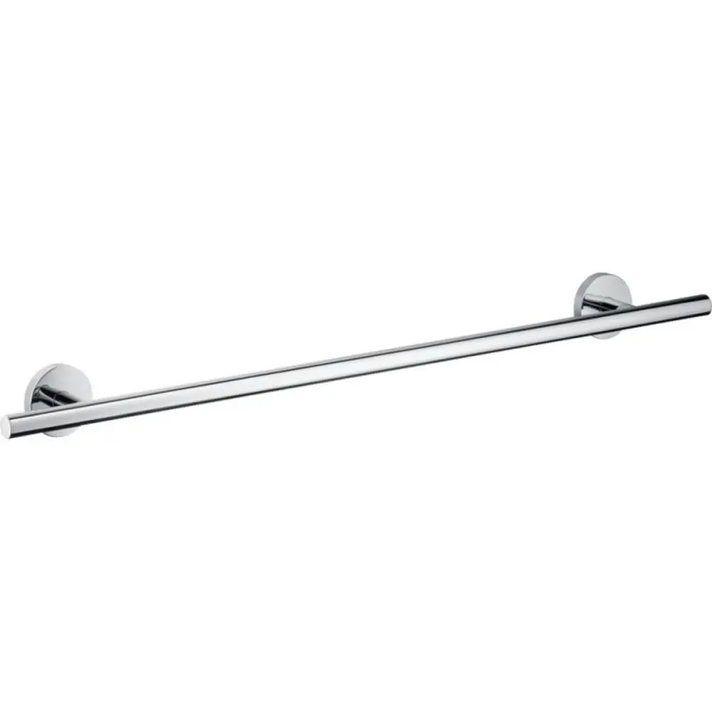 Тримач для рушників Hansgrohe Logis 40516000 виконаний з латуні з хромованою глянсовою поверхнею, яка легко миється та не піддається корозії. Тримач складається з кріплення і стержня довжиною 763 мм, що дозволяє розмістити відразу два рушники або один банний. Прихований монтаж не порушує дизайн ванної кімнати й не псує обробку.