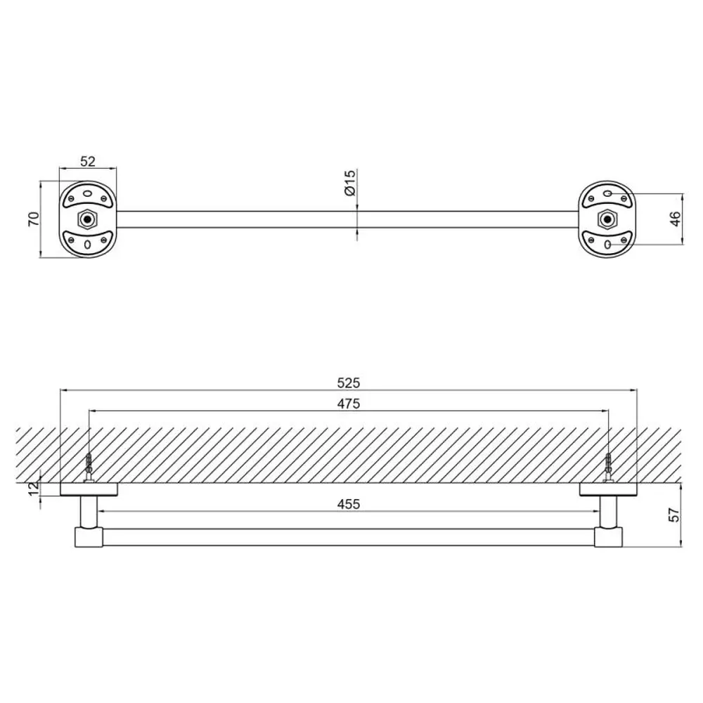 Тримач для рушників Lidz (CRM) 114.01.00 виготовлено з якісного металу з глянцевою хромованою поверхнею. Довжина виробу 525 мм, що дозволить повісити на просушку відразу два невеликих або один банний рушник. Завдяки лаконічній формі тримач не займе багато місця і стане стильним доповненням ванної кімнати.