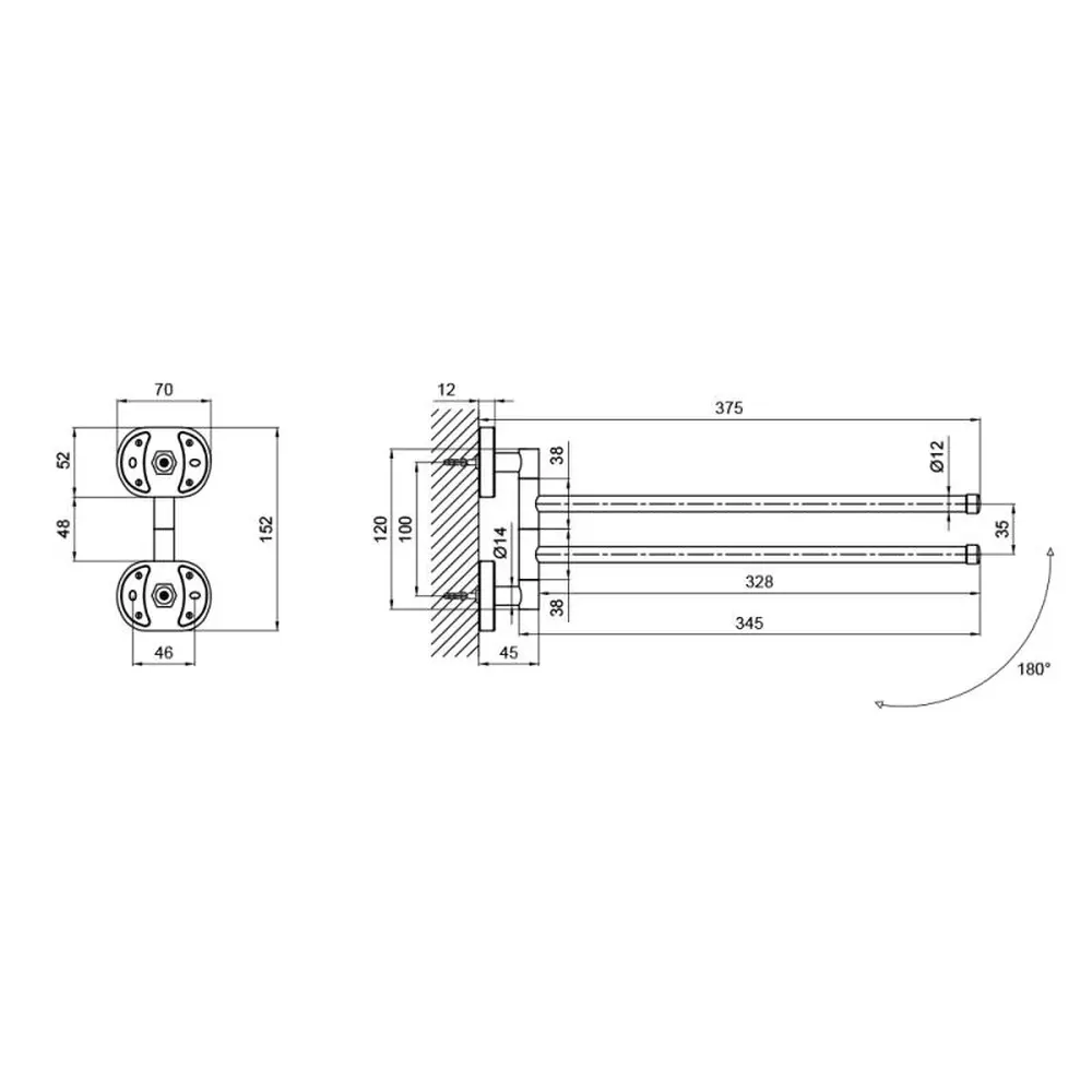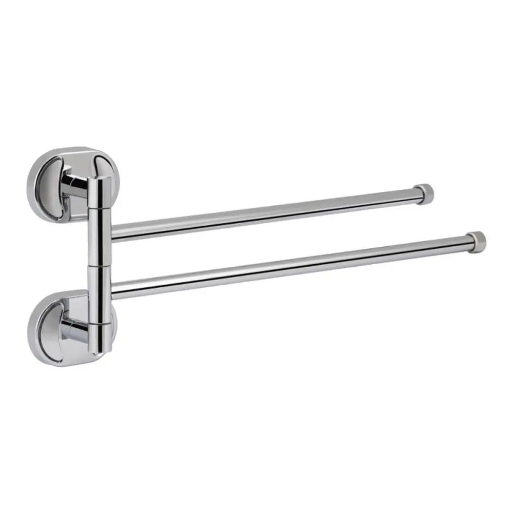 Тримач для рушників Lidz (CRM) 114.07.02 виконаний з металу з хромованою поверхнею, яка запобігає утворенню корозії та бруду. Тримач з декоративними вставками має два поворотних стрижня, на яких можна розмістити два рушники. Довжина виробу 350 мм.