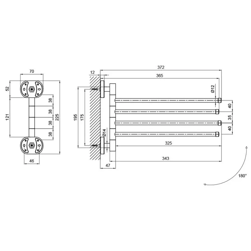 Тримач для рушників Lidz (CRM) 114.07.04 виконаний з металу з хромованою поверхнею, яка запобігає утворенню корозії та бруду. Тримач з декоративними вставками має чотири поворотних стрижня, на які можна розмістити чотири рушники. Довжина виробу - 320 мм.