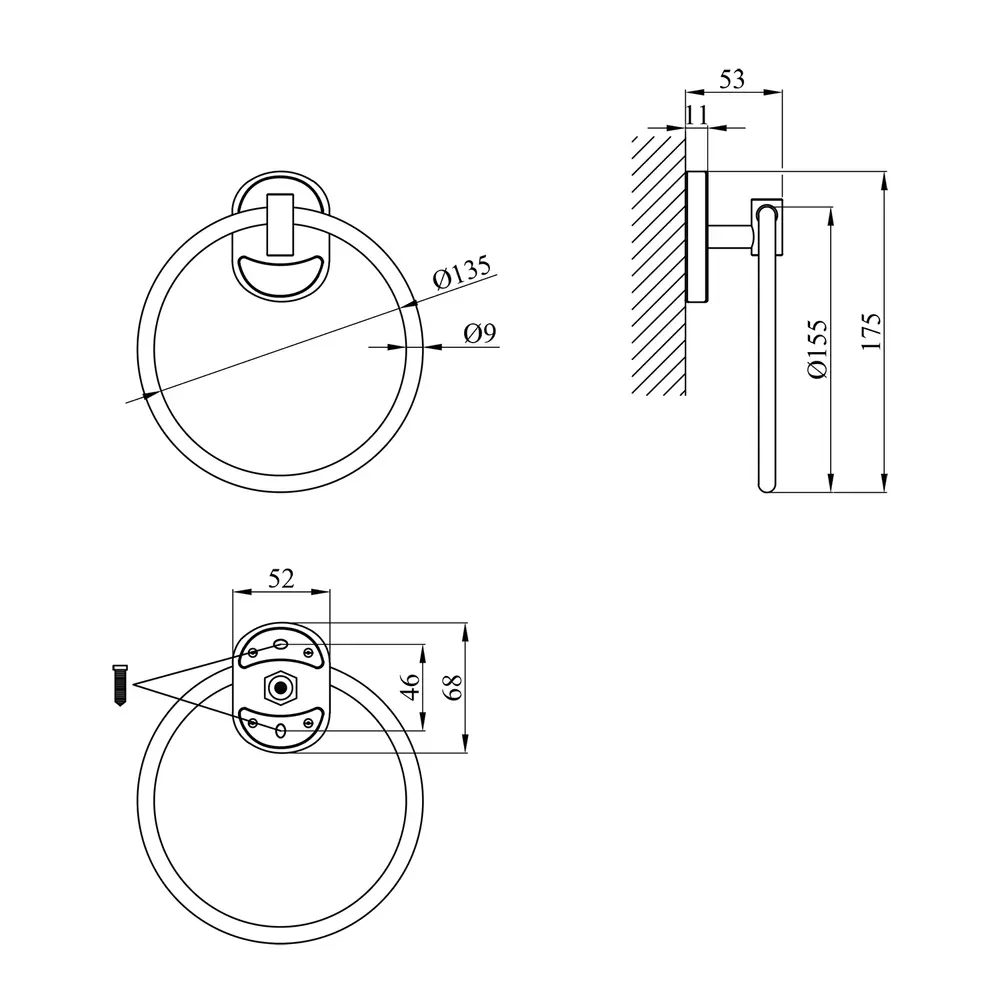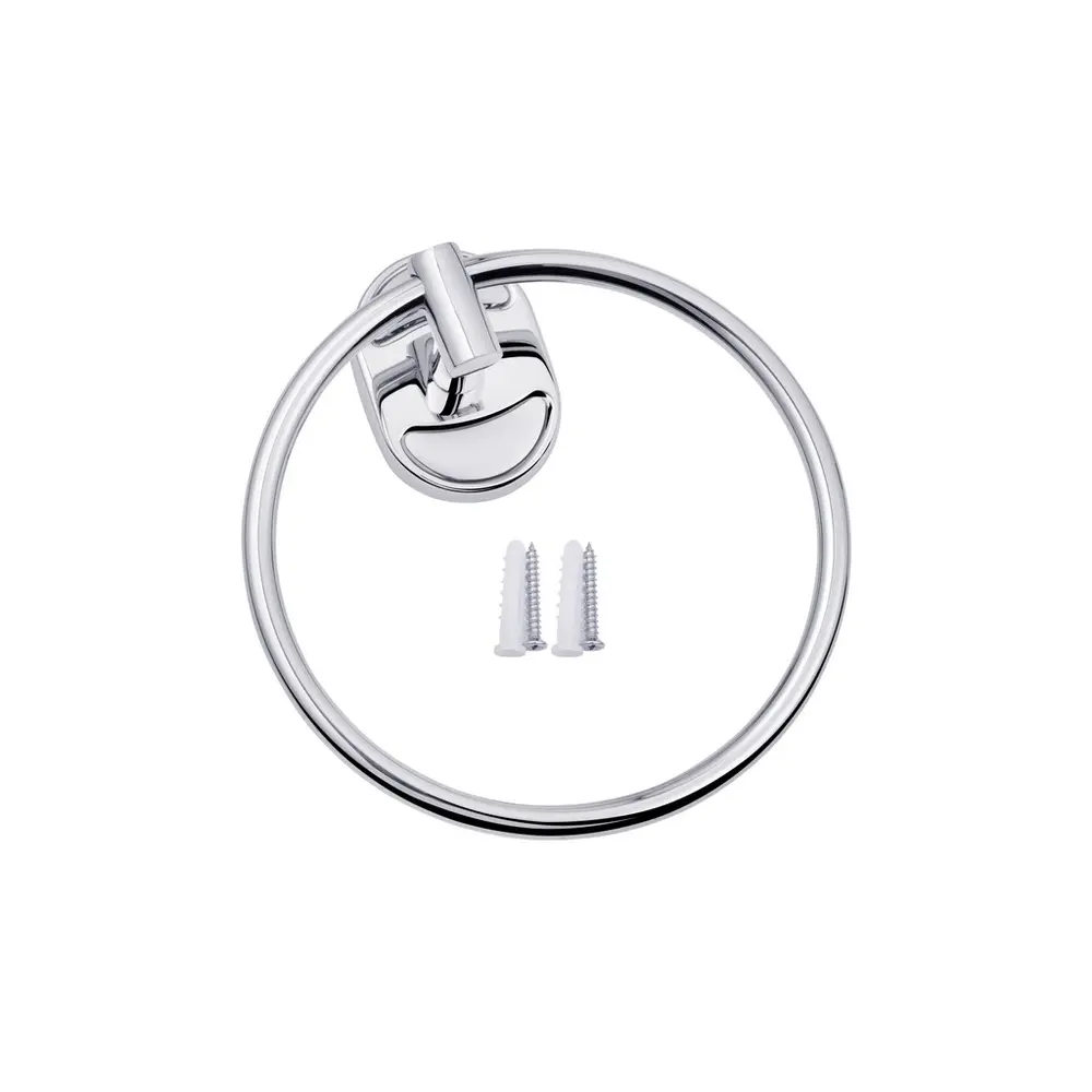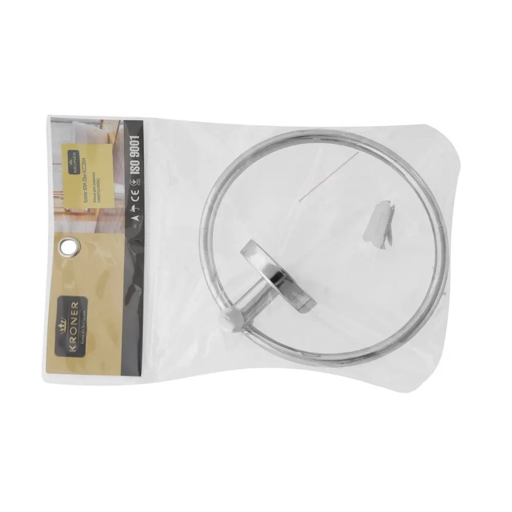 Тримач для рушників Kroner KRM Elbe-ACC2904 стане оригінальним доповненням ванної кімнати. Тримач для рушників виготовлений у формі кільця з міцного металу з хромованою поверхнею. Тримач прикрашений декоративними вставками. Діаметр виробу 265 мм. Приховане кріплення дає змогу зберегти оздобу, а хромоване покриття запобіжить утворенню корозії та бруду. Тримач для рушників кріпиться на стіні на бажаній висоті.