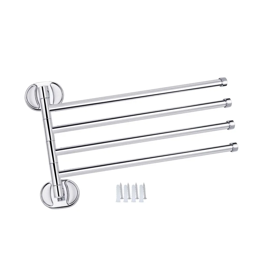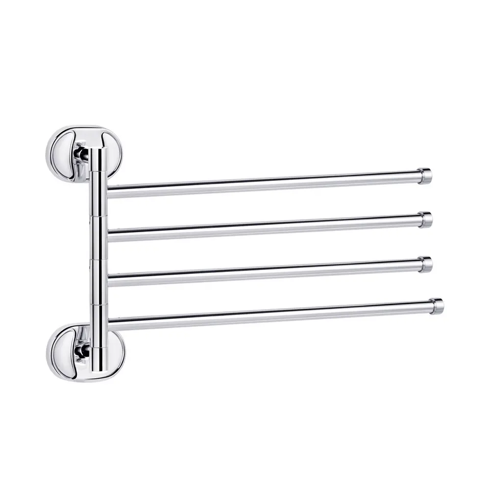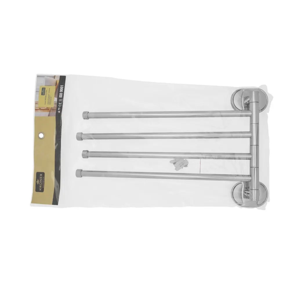 Поворотний тримач для рушника Kroner KRM Elbe-ACC2914 стане оригінальним доповненням ванної кімнати. Тримач для рушників виготовлений із міцного металу з хромованою поверхнею й має чотири поворотних стрижні, на які можна розмістити рушники. Довжина виробу 372 мм. Приховане кріплення дає змогу зберегти оздобу, а хромоване покриття запобіжить утворенню корозії та бруду. Тримач для рушників кріпиться на стіні на бажаній висоті.