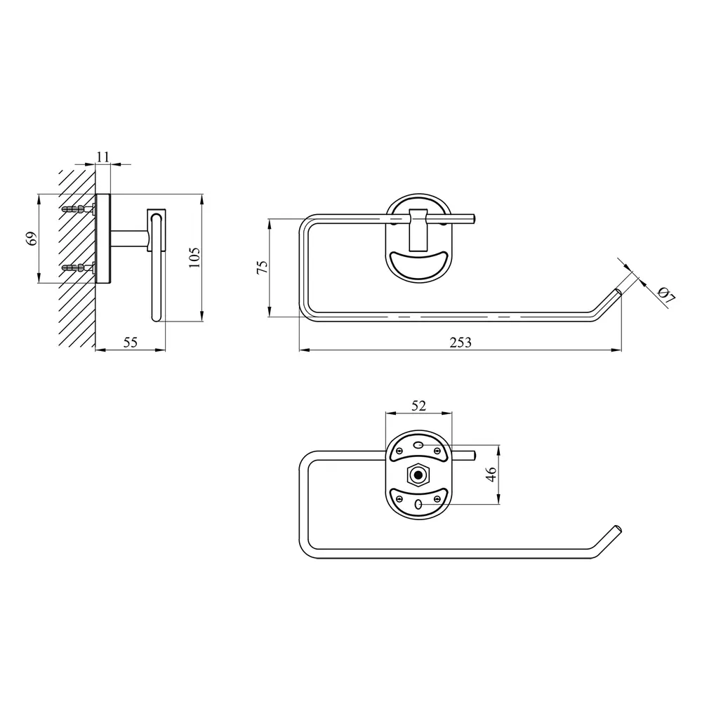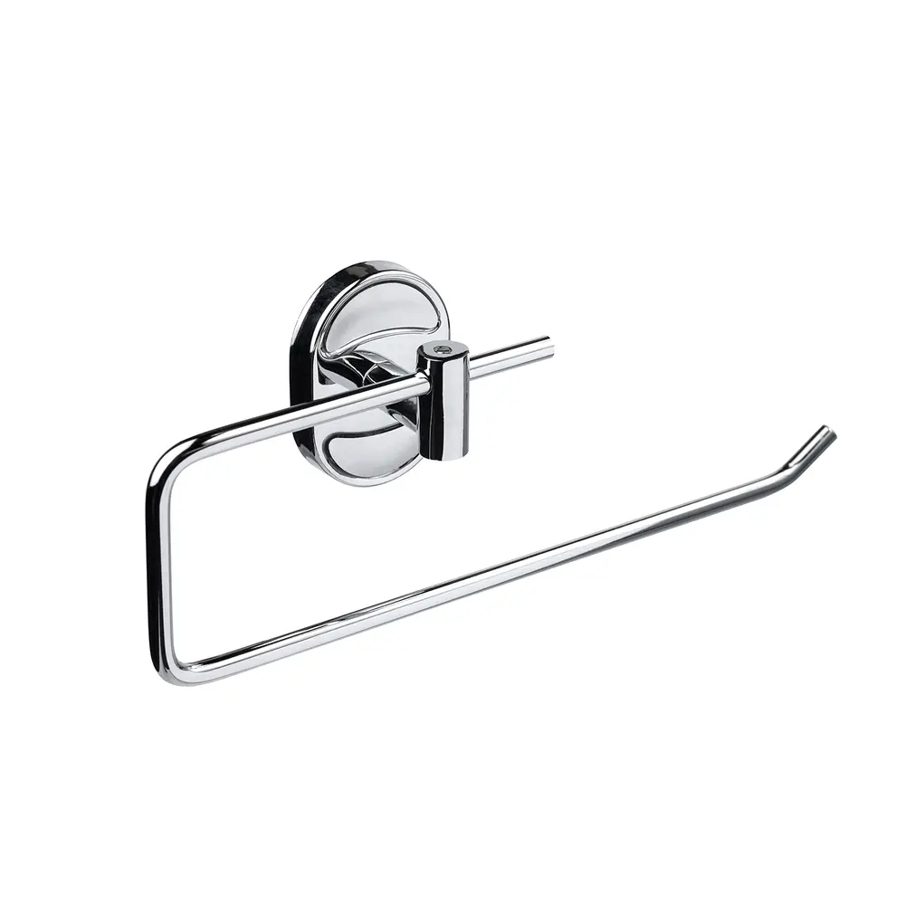 Тримач для туалетного паперу KRM Elbe-ACC2903-3 від Kroner виготовлений із міцного, хромованого металу, який поєднується з усіма аксесуарами санвузла. Тримач із декоративними вставками кріпиться на стіну шурупами на необхідну висоту і, завдяки загнутому гачку, захищає туалетний папір від падінь. Приховане кріплення дає змогу зберегти опорядження санвузла.