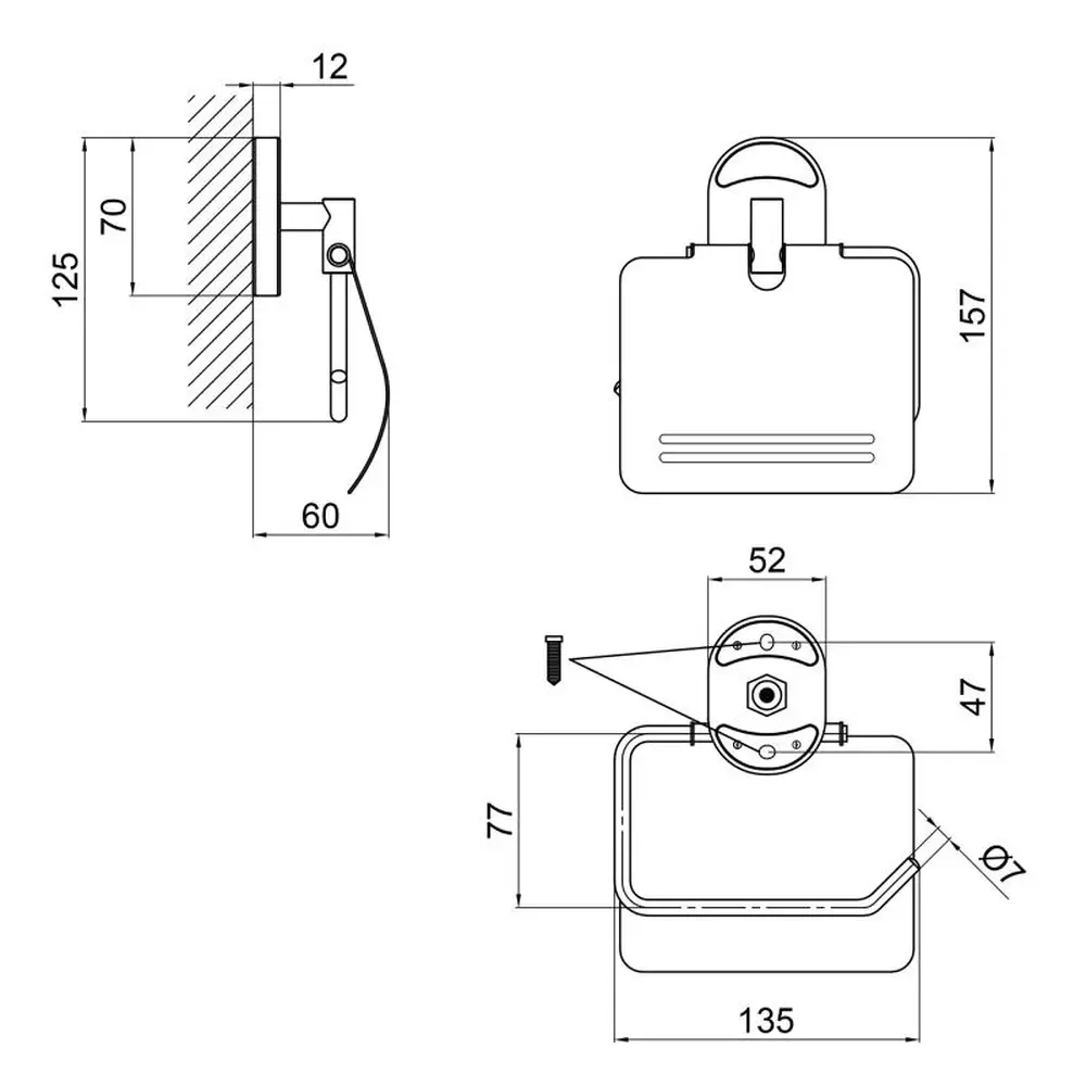 Тримач для туалетного паперу з кришкою Lidz (CRM) 114.03.01 виготовлений з міцного металу з хромованим покриттям, яке поєднується з усіма аксесуарами санвузла. Такий аксесуар дозволяє тримати необхідні предмети завжди під рукою і прибрати зайве з підлоги для зручного прибирання. Кришка приховує з виду рулон туалетного паперу, а також захищає його від бризок і пилу. Тримач з декоративними вставками кріпиться на стіну шурупами на необхідну висоту.