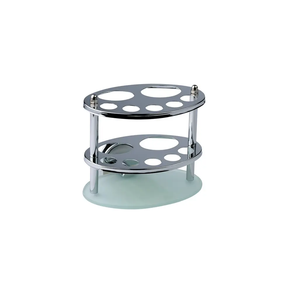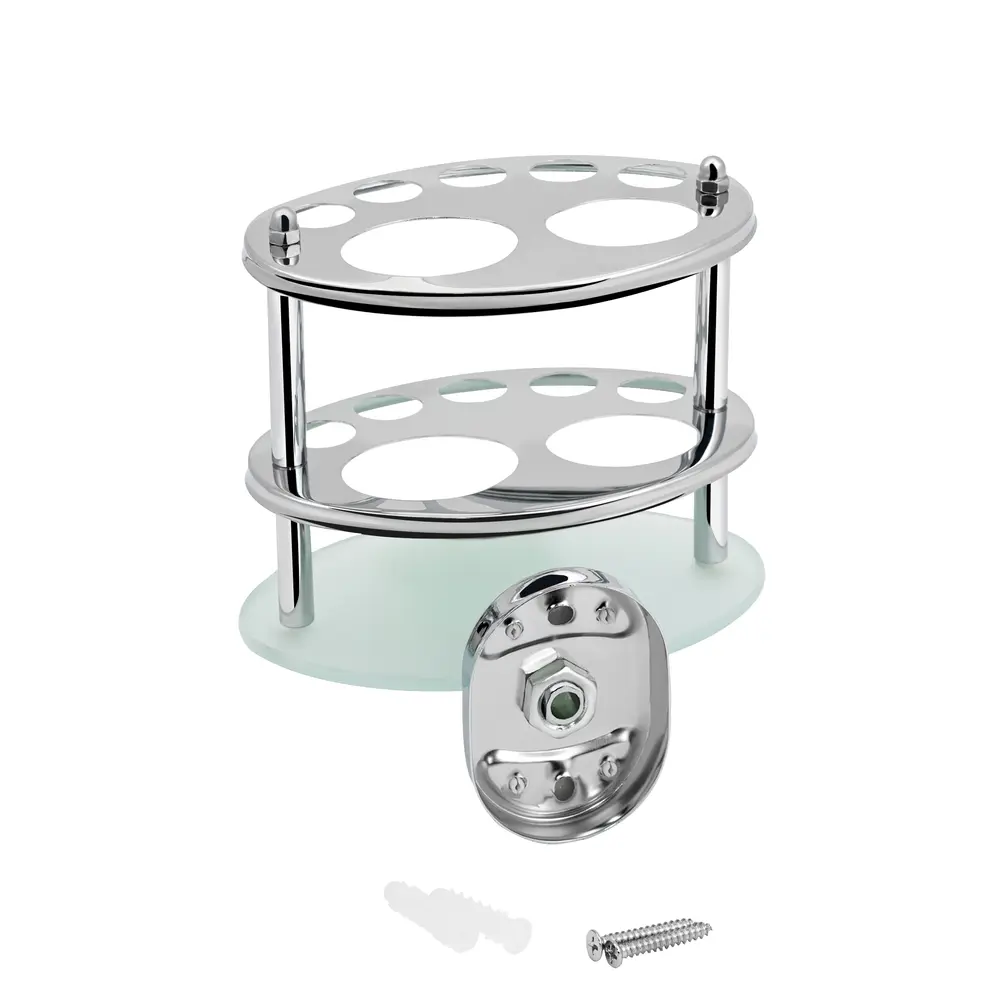 Тримач для зубних щіток (KRM) Elbe-ACG2918 від Kroner має двоярусну конструкцію, тому зубні щітки та паста будуть міцно зафіксовані. Зроблено п'ять отворів для зубних щіток і два — для зубної пасти. Хромоване покриття перешкодить утворенню корозії та бруду.