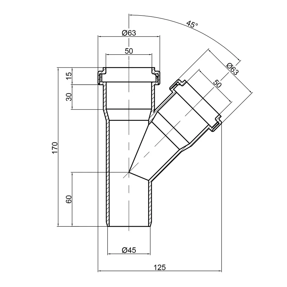 Равнопроходной канализационный тройник TA Sewage имеет функцию разветвления трубопровода систем внутренней канализации, в жилых, производственных, административных зданиях под углом 45 °. Канализационный фитинг - тройник имеет размер подключения 50 мм и присоединяется к другим фитингов системы с помощью раструба. Этот способ монтажа является простым, надежным и долговечным. Изготавливается тройник TA Sewage из полипропилена высокого качества.
