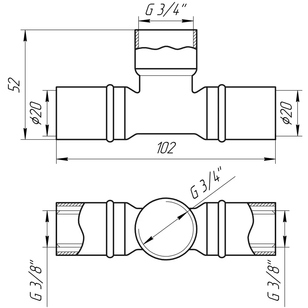 Габариты: 20 * 3/4 * 20 на 20 металлопластиковых труб