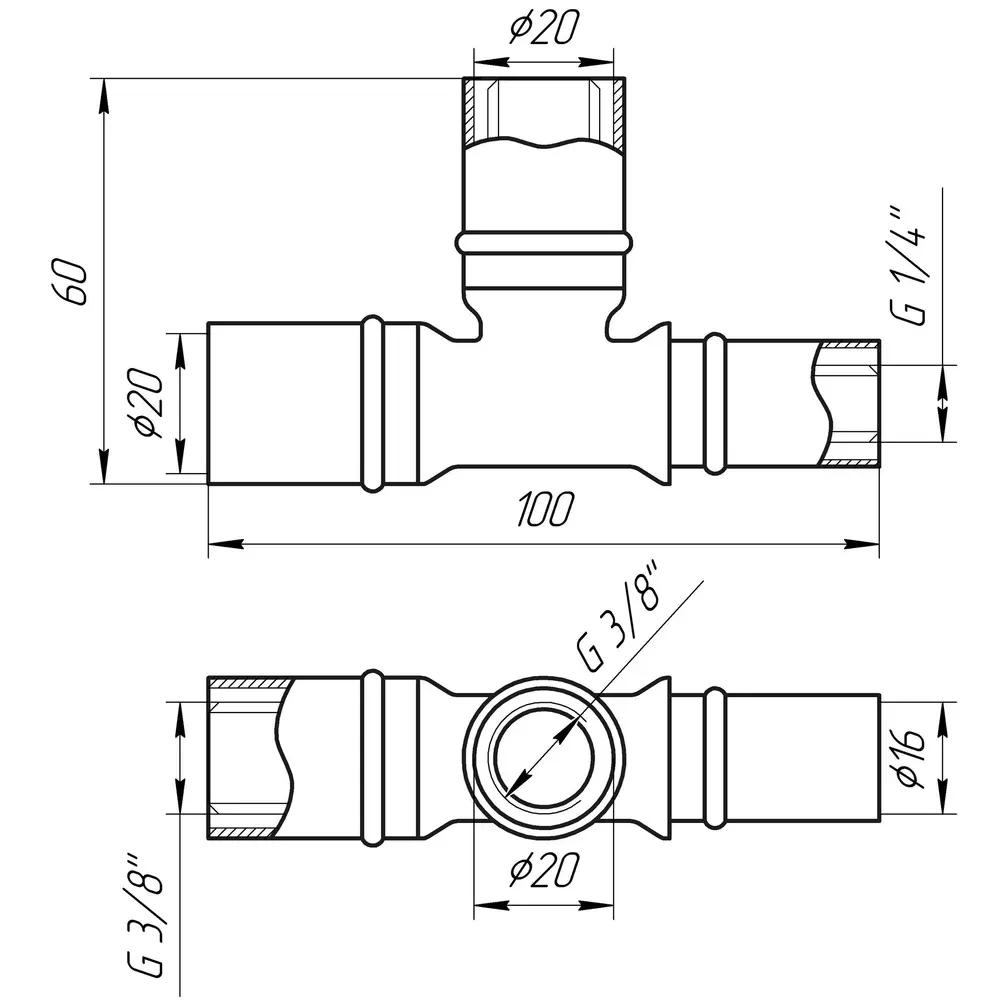 Габарити: 20 * 20 * 16 на 16 і 20 металопластикових труб