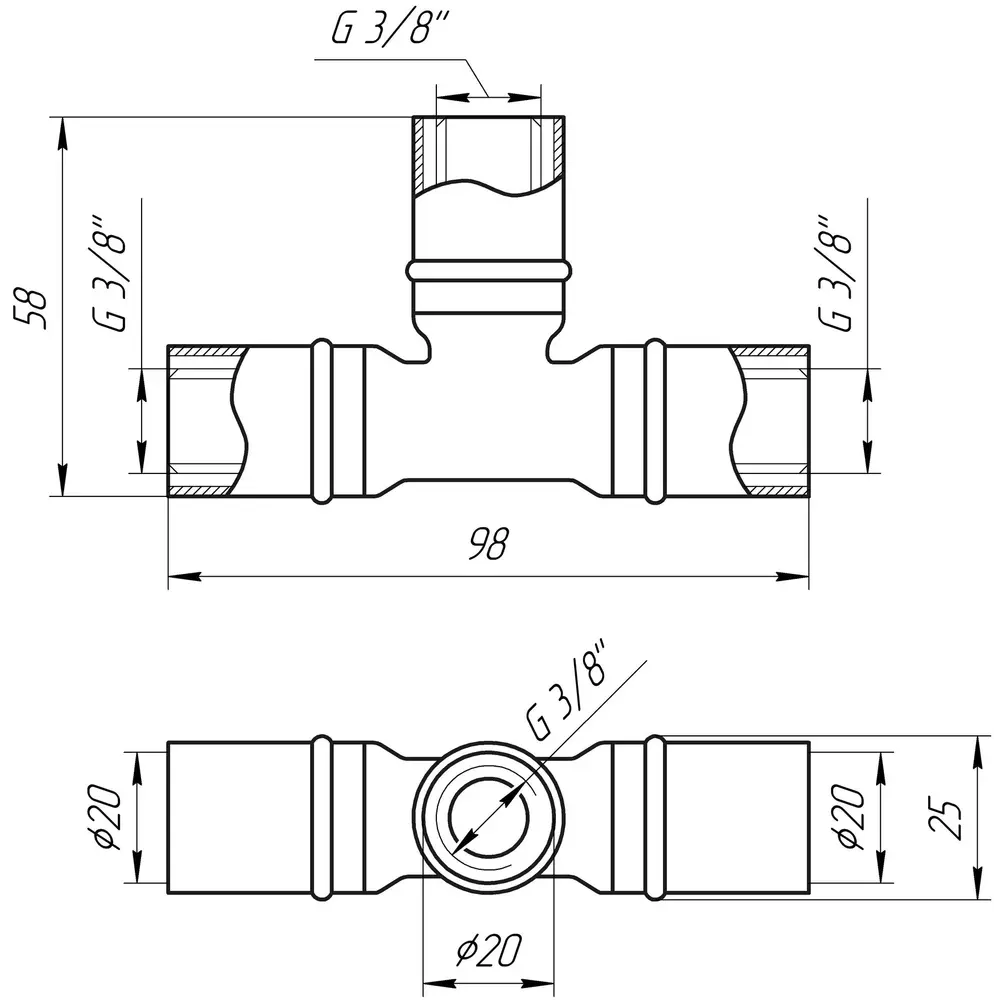 Габарити: 20 * 20 * 20 на 20 металопластикових труб