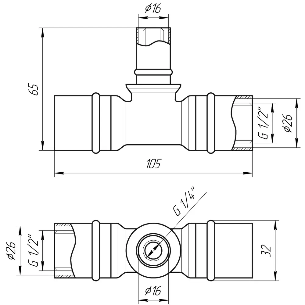 Габарити: 26 * 16 * 26 на 16 і 26 металопластикових труб