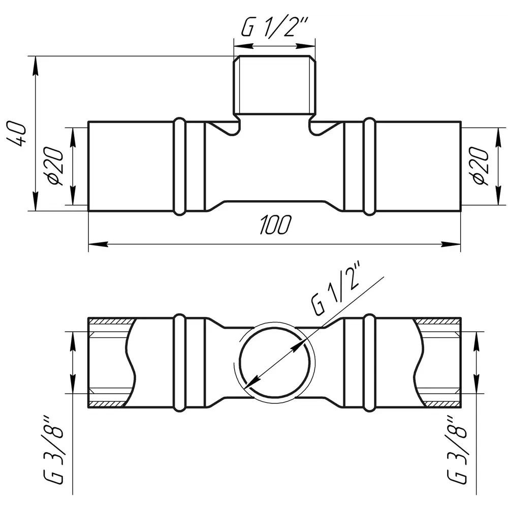 Габариты : 20*1/2*20 на 20 металлопластиковую трубу