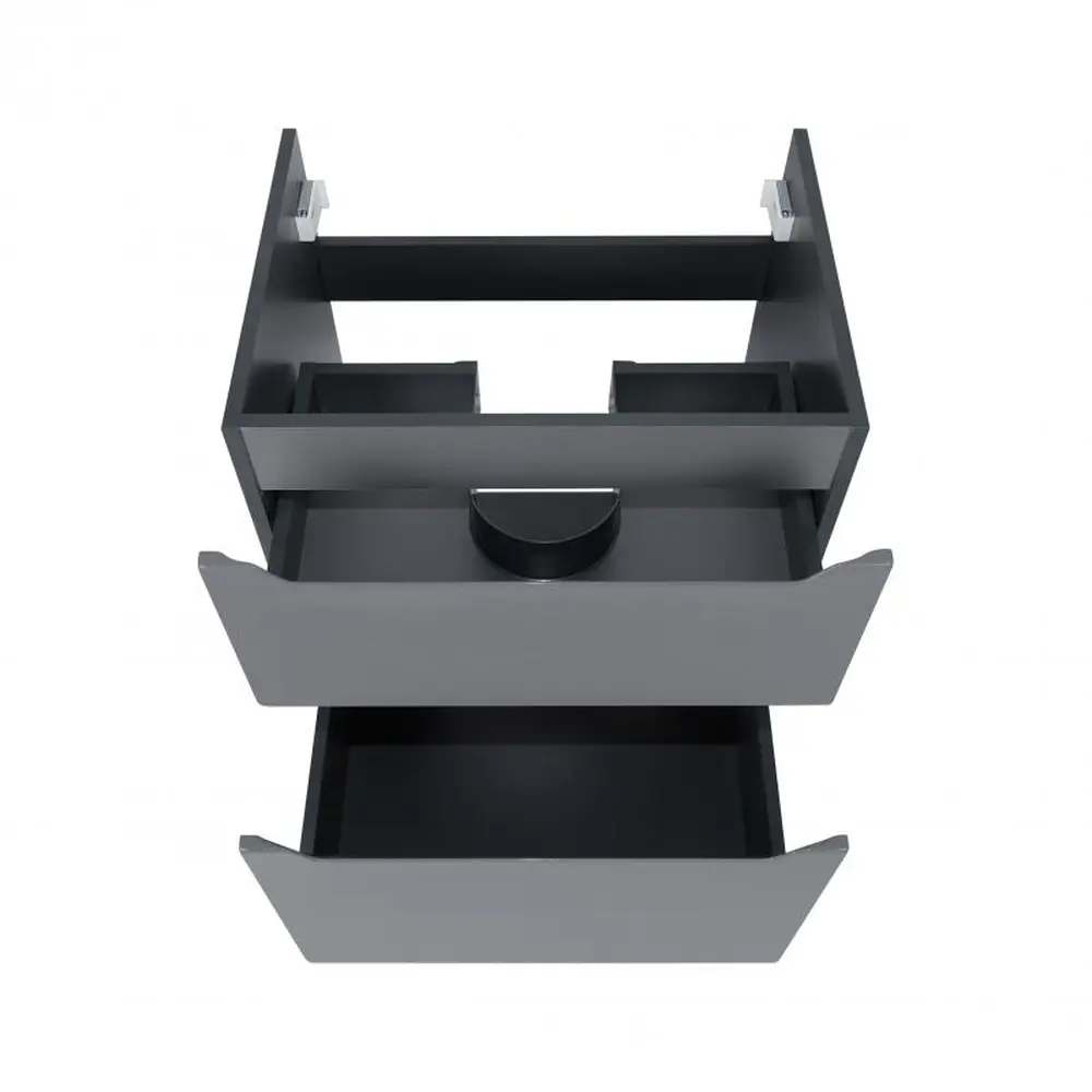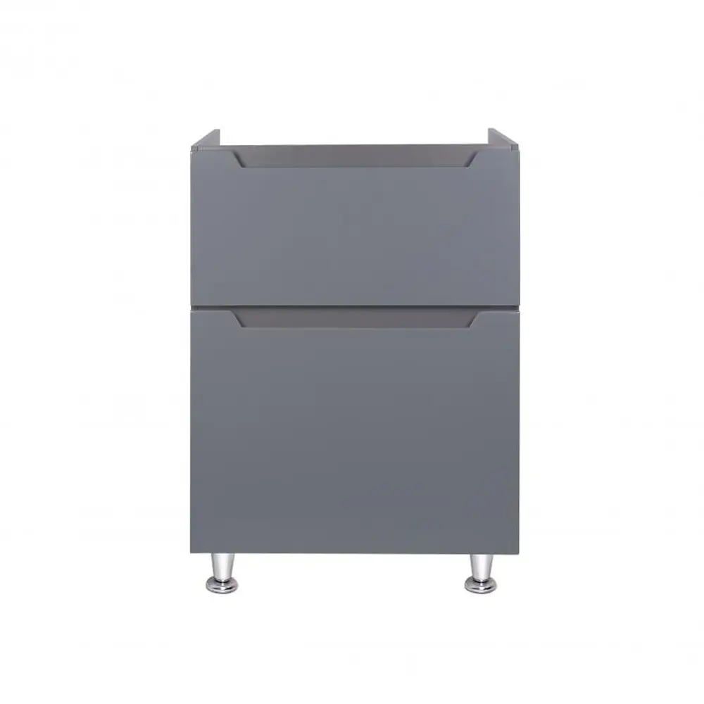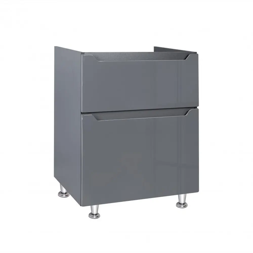 Підлогова тумба Підлогова тумба Qtap Scorpio 605х825х460 Graphite QT1473TNВ602G виконана в лаконічному стилі, який доповнить дизайн будь-якої ванної кімнати. Корпус тумби сірого кольору виготовлений з ЛДСП, фасадна частина - з МДФ з глянцевим покриттям. Оснащена двома висувними ящиками з механізмом доводчика. У комплекті чотири стійкі металеві ніжки.