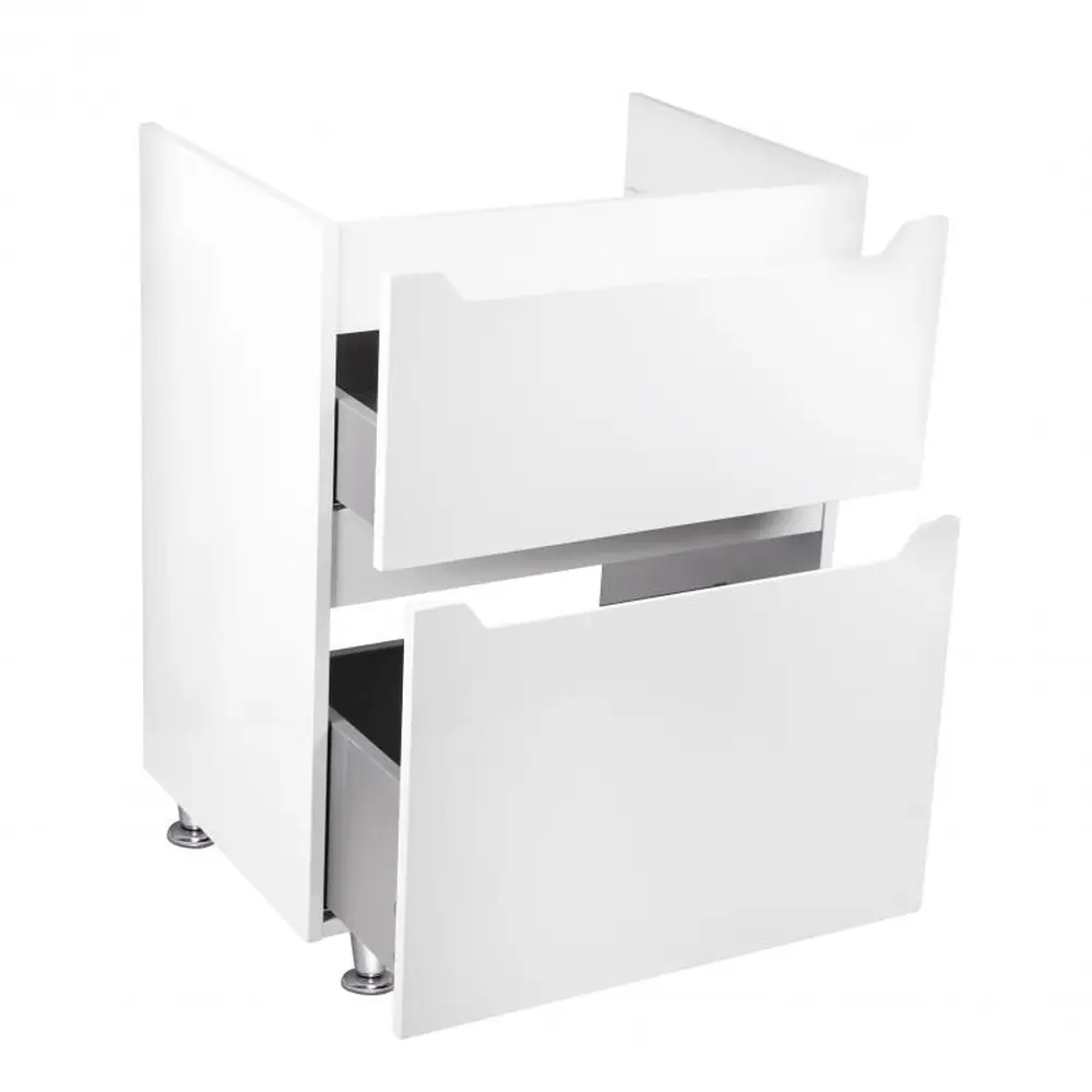 Підлогова тумба Qtap Scorpio QT1473TNВ601W виконана в лаконічному стилі, який доповнить дизайн будь-якої ванної кімнати. Корпус тумби білого кольору виготовлений з ЛДСП, фасадна частина - з МДФ з глянцевим покриттям. Оснащена двома висувними ящиками з механізмом доводчика. У комплекті чотири стійкі металеві ніжки.