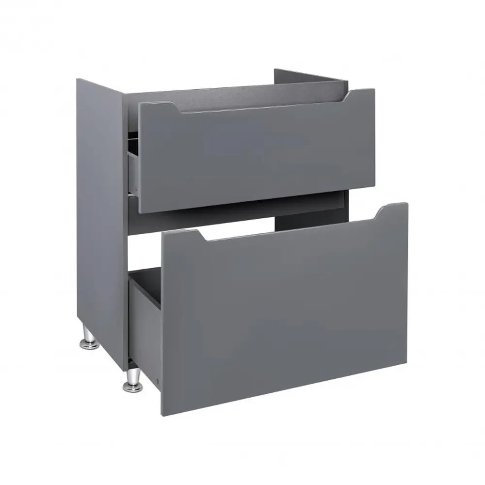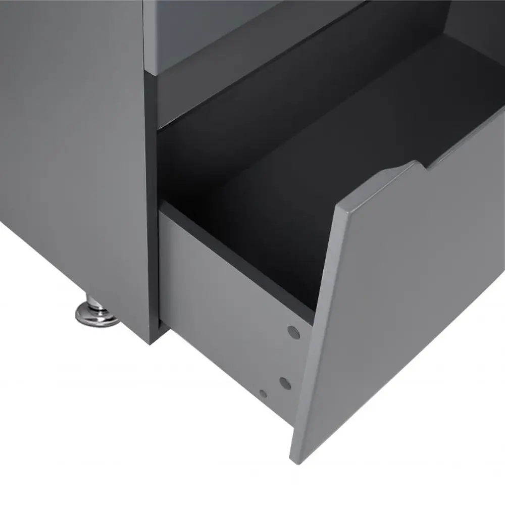 Підлогова тумба Qtap Scorpio 710х825х460 Graphite QT1473TNВ702G виконана в лаконічному стилі, який доповнить дизайн будь-якої ванної кімнати. Корпус тумби сірого кольору виготовлений з ЛДСП, фасадна частина - з МДФ з глянцевим покриттям. Оснащена двома висувними ящиками з механізмом доводчика. У комплекті чотири стійкі металеві ніжки.