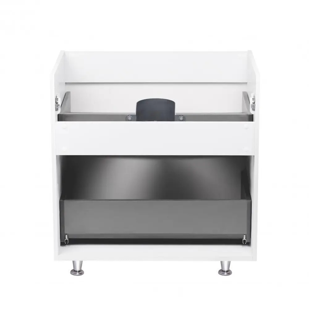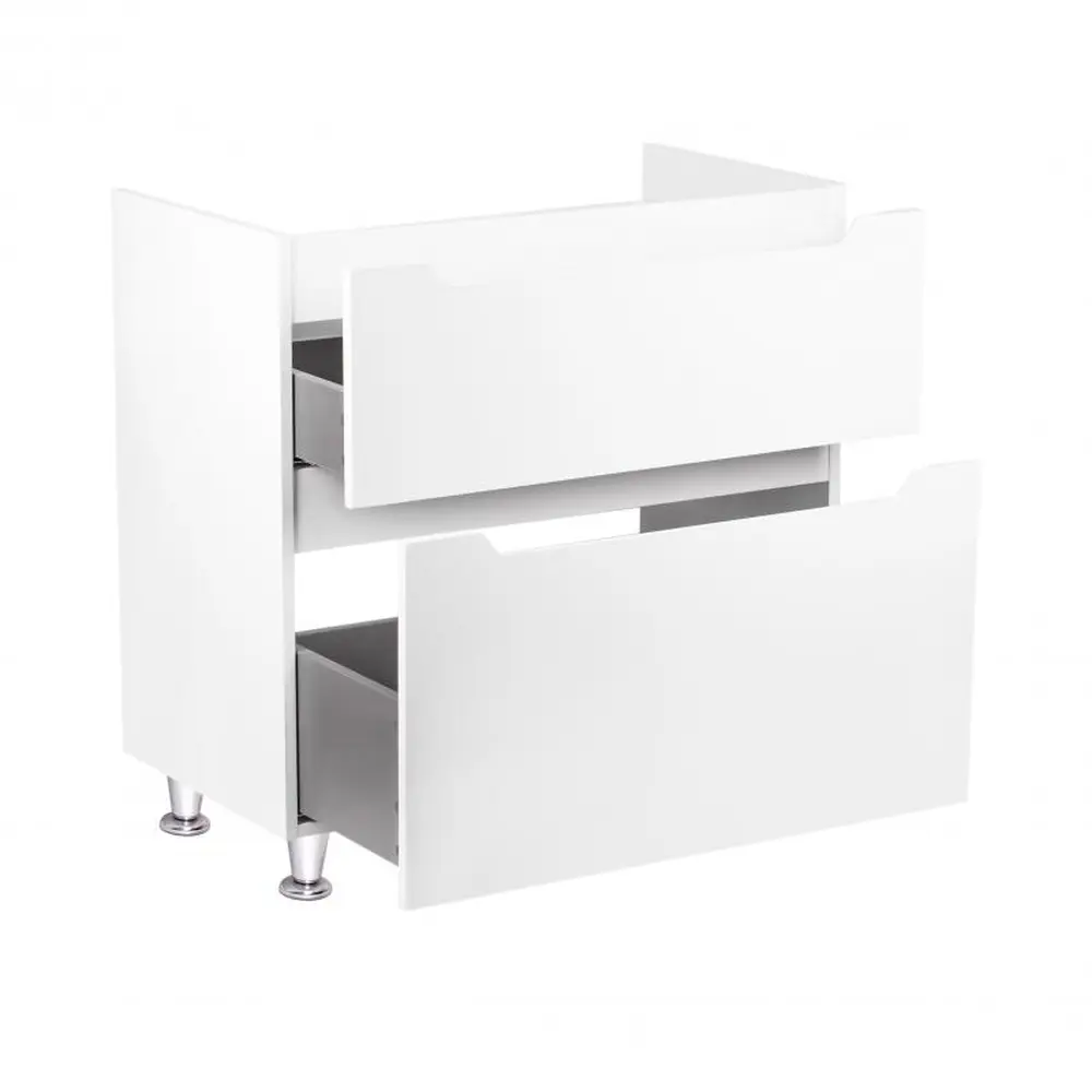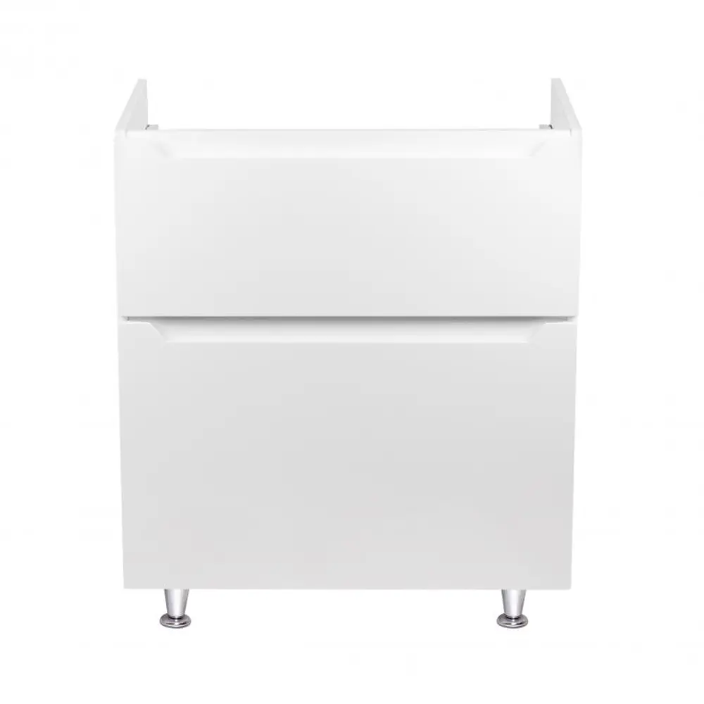 Підлогова тумба Qtap Scorpio QT1473TNВ701W виконана в лаконічному стилі, який доповнить дизайн будь-якої ванної кімнати. Корпус виробу білого кольору виготовлений із ЛДСП, фасадна частина - з МДФ з глянцевим покриттям. Тумба оснащена двома місткими висувними ящиками з механізмом доводчика. У комплектацію входять чотири стійкі металеві ніжки. Раковина в комплектацію не входить.