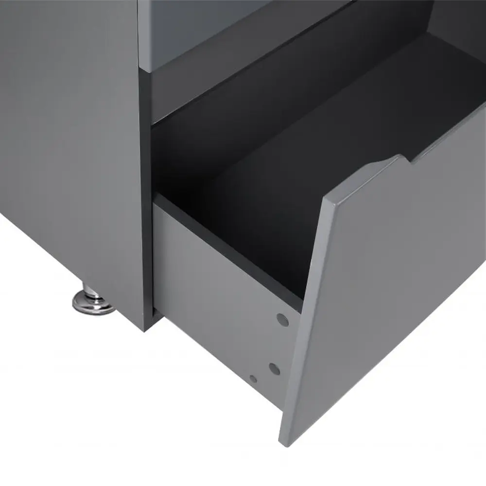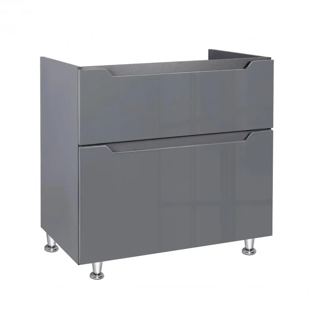 Підлогова тумба Qtap Scorpio 810х825х460 Graphite QT1473TNВ802G виконана в лаконічному стилі, який доповнить дизайн будь-якої ванної кімнати. Корпус тумби сірого кольору виготовлений з ЛДСП, фасадна частина - з МДФ з глянцевим покриттям. Оснащена двома висувними ящиками з механізмом доводчика. У комплекті чотири стійкі металеві ніжки.