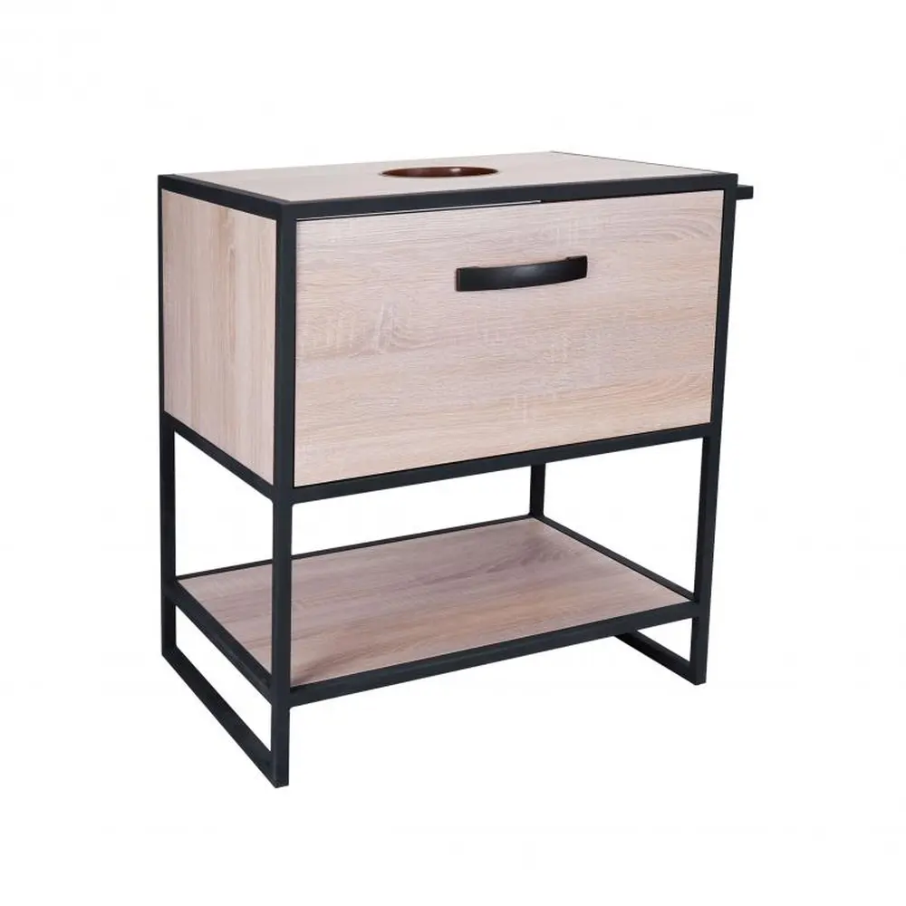 Підлогова тумба Qtap Taurus 600х616х469 Whitish oak зі стільницею QT2480TNT63WO виконана з отвором для встановлення накладної раковини, а також з отвором під сифон. Корпус і фасад тумби кольору білого дуба виготовлений з ЛДСП. Виріб оснащений зручним і містким висувним ящиком з механізмом доведення і полицею. Сталевий фарбований каркас чорного кольору додає тумбі оригінальний зовнішній вигляд, завдяки якому вона підійде до дизайну будь-якої сучасної ванної кімнати.