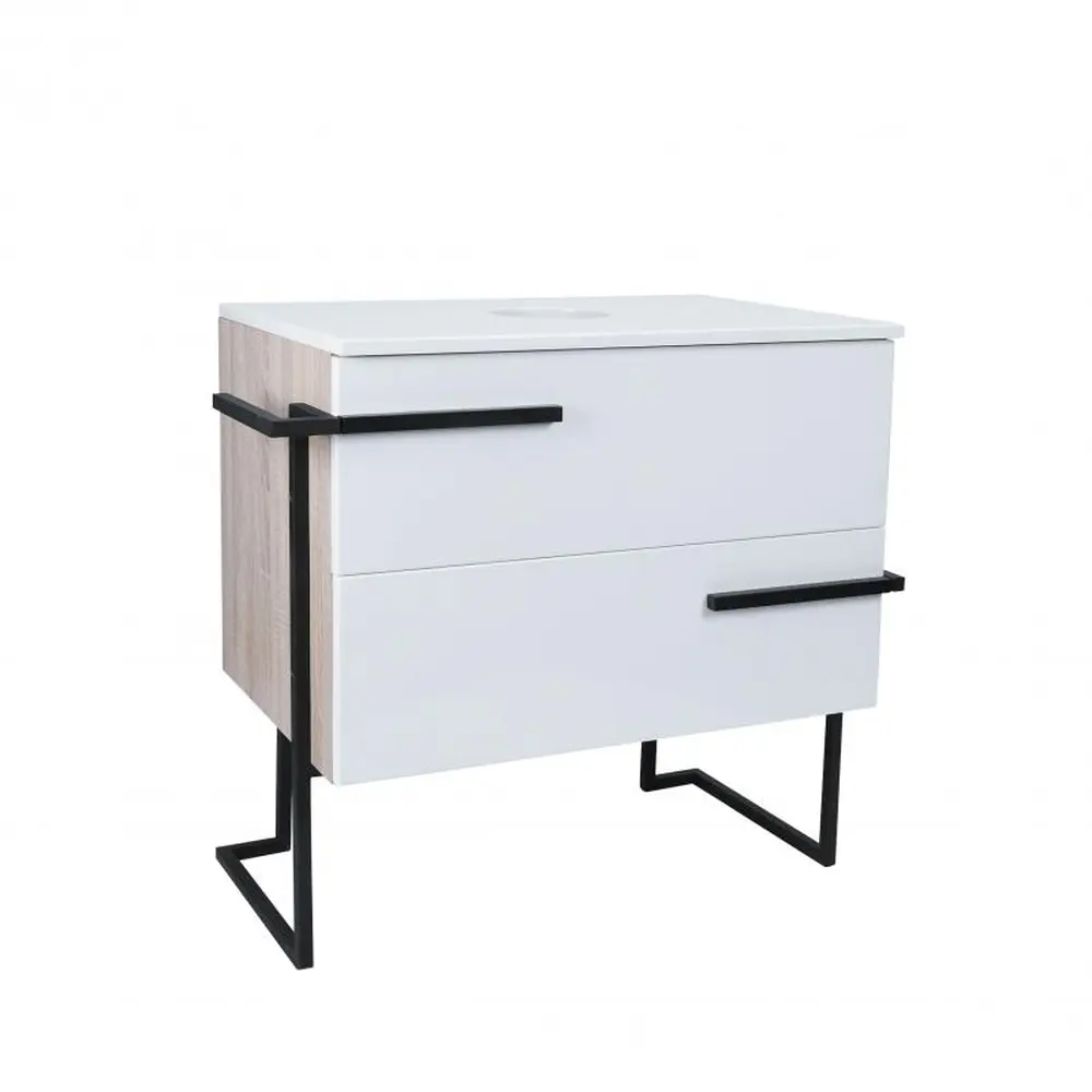 Підлогова тумба Qtap Taurus 700х616х437 White/Whitish oak зі стільницею QT2480TNT703WWO виконана з отвором для накладної раковини, а також отвором під сифон. Корпус тумби виготовлений з ЛДСП, фасадна частина - з МДФ з глянцевим покриттям. Виріб оснащений зручними і місткими висувними ящиками з механізмом доведення. Суцільнометалевий каркас чорного кольору стане яскравим акцентом. Тумба виконана у лаконічному стилі і підійде до дизайну будь-якої сучасної ванної кімнати.