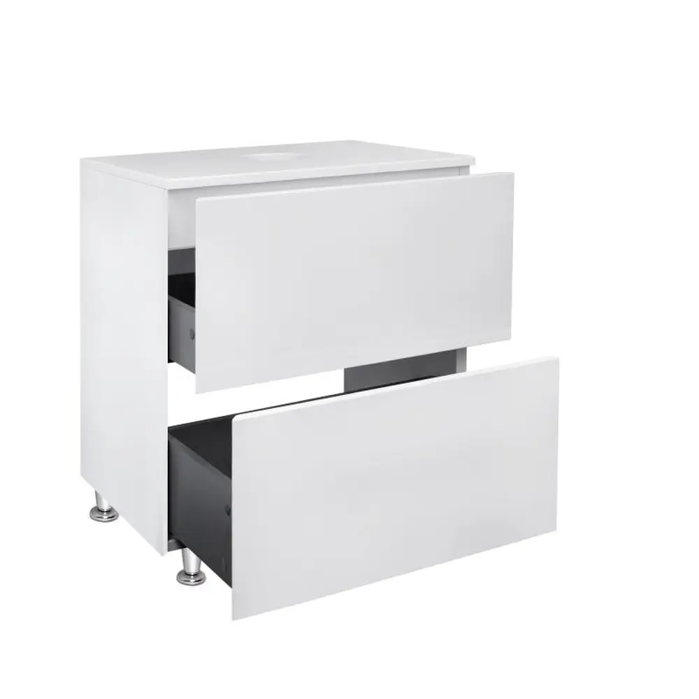 Підлогова тумба Qtap Tern 600х616х469 White зі стільницею QT1780TNL601W виконана з отвором для встановлення накладної раковини-чаші, а також отвором під сифон. Корпус тумби білого кольору виготовлений із ЛДСП, фасадна частина із МДФ. Виріб оснащений зручними та місткими висувними ящиками. Завдяки механізму push-to-open ящики відкриваються одним легким натисканням на фасадну частину. Такий виріб стане яскравим доповненням до будь-якої сучасної ванної кімнати.