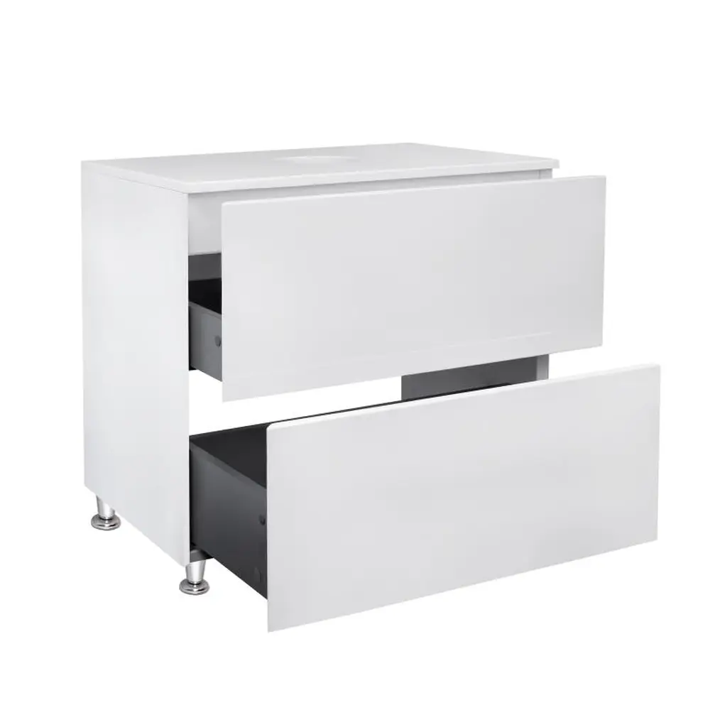 Підлогова тумба Qtap Tern 700х616х469 White зі стільницею QT1780TNL701W виконана з отвором для встановлення накладної раковини-чаші, а також отвором під сифон. Корпус тумби білого кольору виготовлений із ЛДСП, фасадна частина із МДФ. Виріб оснащений зручними та місткими висувними ящиками. Завдяки механізму push-to-open ящики відкриваються одним легким натисканням на фасадну частину. Такий виріб стане яскравим доповненням до будь-якої сучасної ванної кімнати.